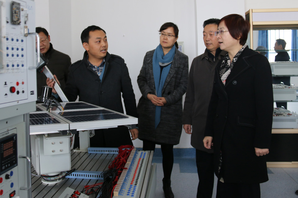 王海燕、王雁一行參觀了我院能源工程系熱工實(shí)驗(yàn)室、電氣綜合實(shí)驗(yàn)室、光伏發(fā)電系統(tǒng)實(shí)驗(yàn)室、光伏發(fā)電系統(tǒng)仿真與測(cè)試實(shí)驗(yàn)室、光伏器件生產(chǎn)實(shí)驗(yàn)室和醫(yī)學(xué)實(shí)驗(yàn)實(shí)訓(xùn)室、生命科技館、無紙化考試中心等地,就實(shí)驗(yàn)實(shí)訓(xùn)設(shè)備的功能和在教學(xué)中的應(yīng)用做了詳細(xì)了解。