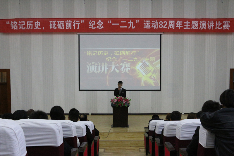 為紀(jì)念一二·九學(xué)生愛國運動82周年,弘揚新時代學(xué)生愛國主義精神,12月8日下午,能源工程系在正德廳舉行了“銘記歷史砥礪前行”主題演講比賽,系上全體師生參加此次活動。