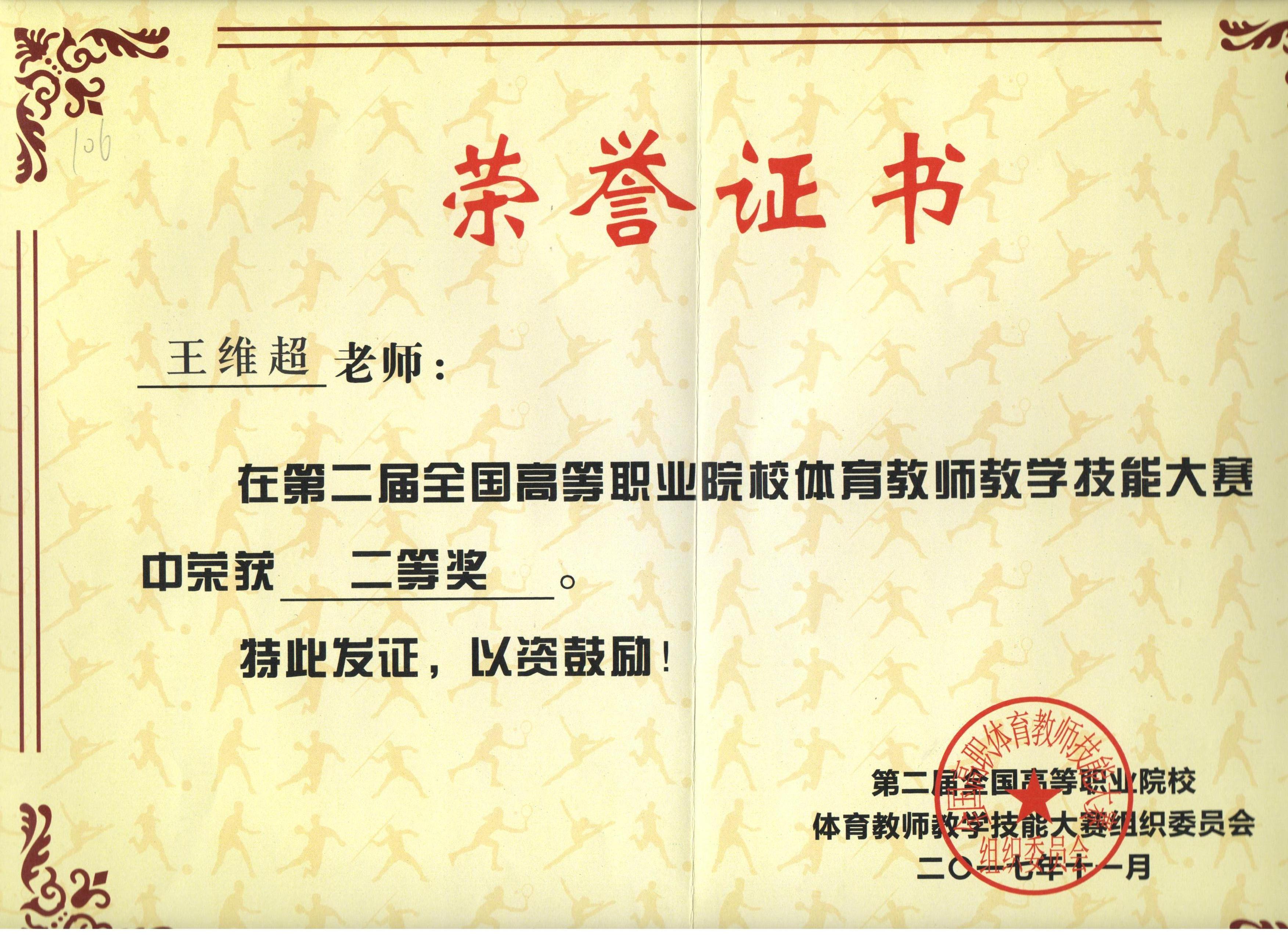 人文藝術(shù)教育系王維超老師在第二屆全國(guó)高等職業(yè)院校體育教師技能大賽上獲獎(jiǎng)