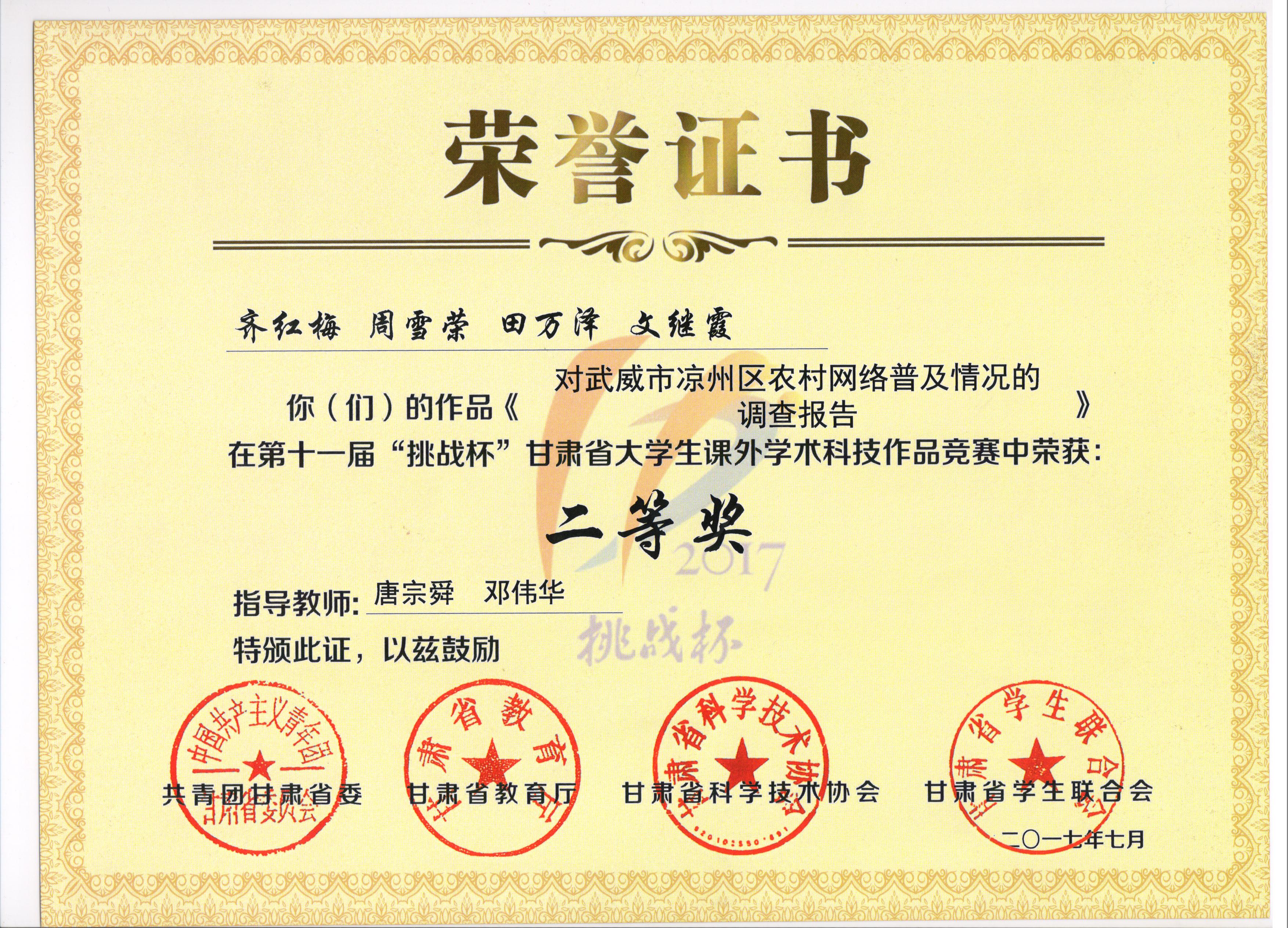 我系學(xué)子在甘肅省第十一屆“挑戰(zhàn)杯”課外學(xué)術(shù)作品競(jìng)賽喜獲佳績(jī)