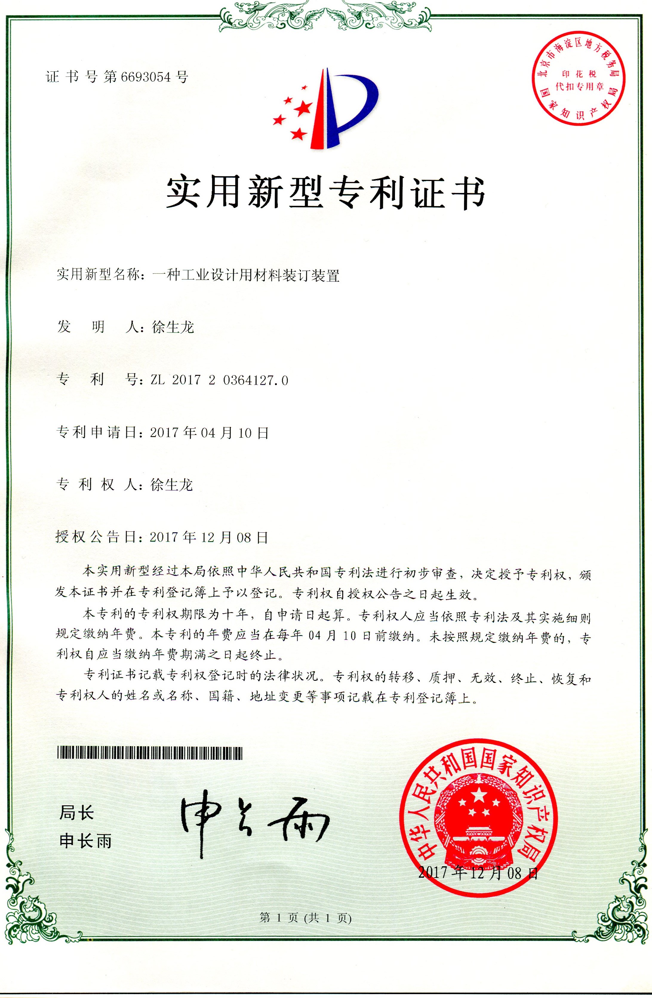 科研成果---實(shí)用新型專(zhuān)利:一種工業(yè)設(shè)計(jì)用材料裝訂裝置