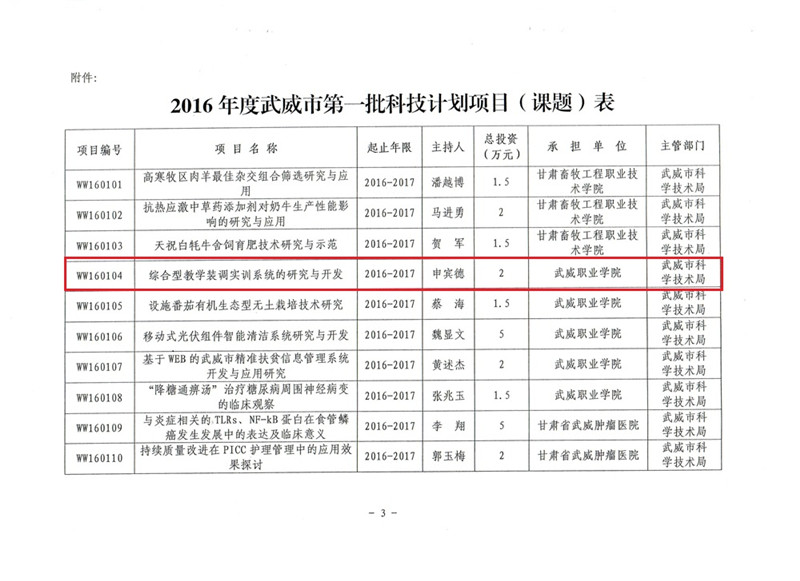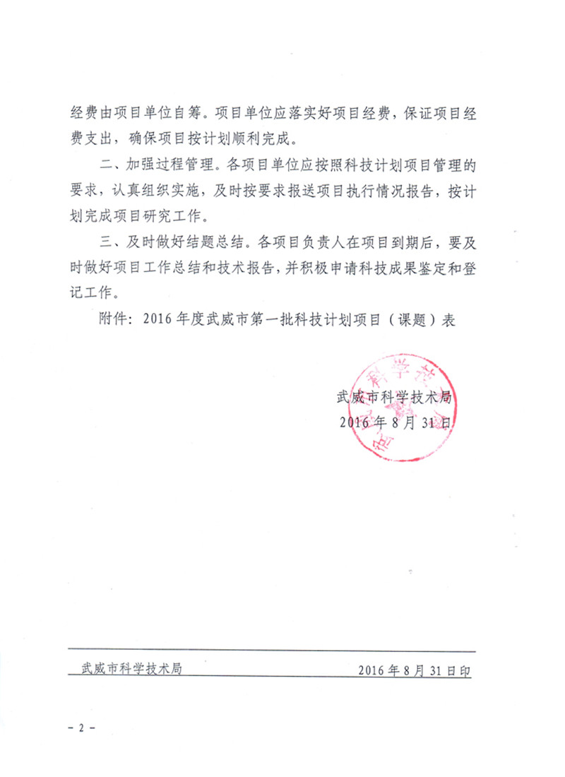 科研項目---2016年度武威市第一批科技計劃項目