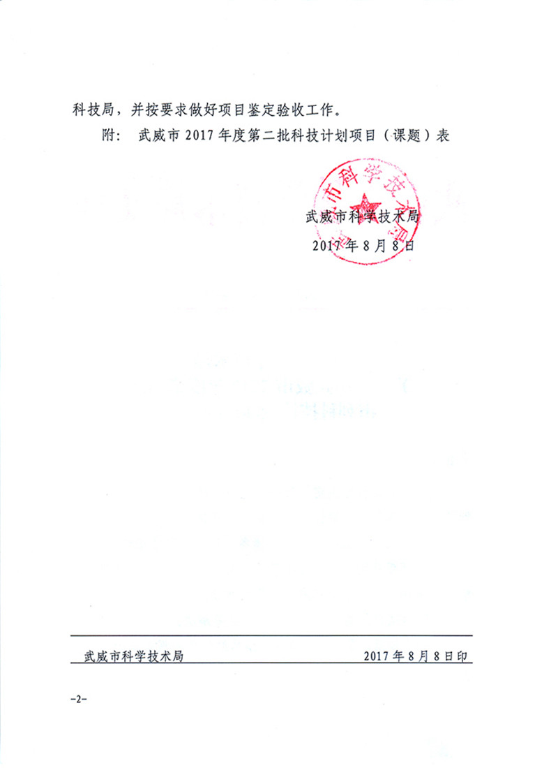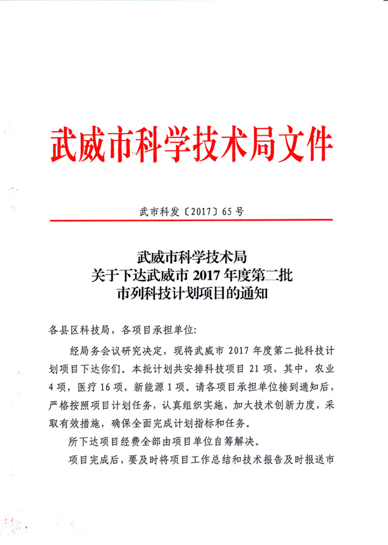 科研項(xiàng)目---2017年度武威市第二批科技計(jì)劃項(xiàng)目