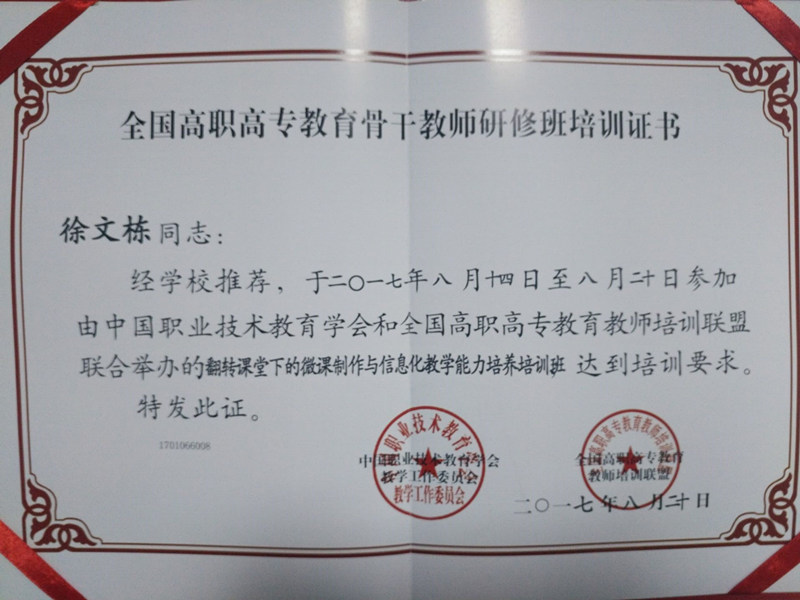 優(yōu)質(zhì)校建設(shè)之高校教師教學(xué)能力、信息技術(shù)與專業(yè)素養(yǎng)提升高級培訓(xùn)班總結(jié)及證書——徐文棟