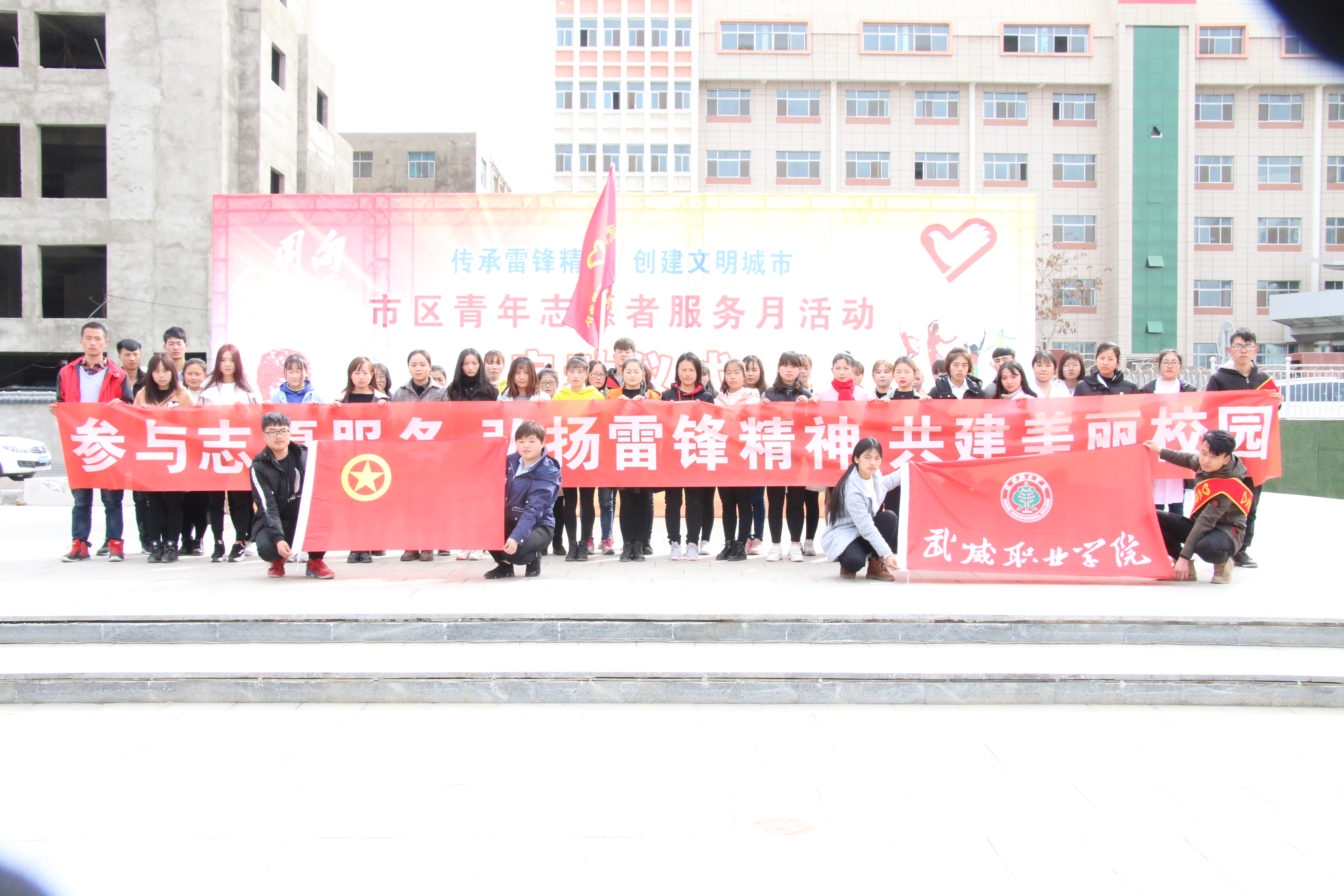 今年是毛澤東等老一輩革命家為雷鋒同志題詞55周年,3月5日是中國(guó)青年志愿者服務(wù)日。 3月5日下午,學(xué)院50名志愿者在武威市文化廣場(chǎng)參加了全市志愿者服務(wù)月活動(dòng)啟動(dòng)儀式,活動(dòng)現(xiàn)場(chǎng)氣氛熱烈,市領(lǐng)導(dǎo)為我院志愿服務(wù)隊(duì)進(jìn)行了授旗,青年志愿者代表宣讀了倡議書(shū),全體志愿者重溫了青年志愿者誓詞。