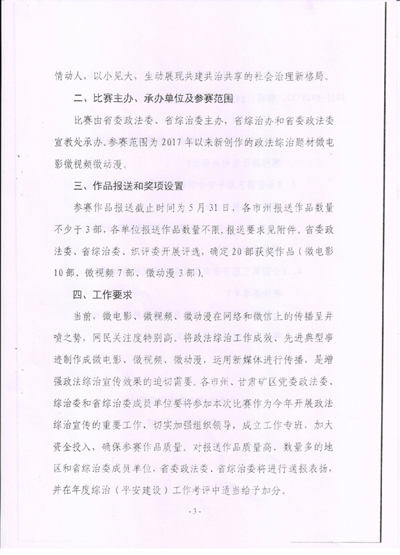 組織參加全國(guó)第三屆平安中國(guó)微電影微視頻微動(dòng)漫比賽的通知>》