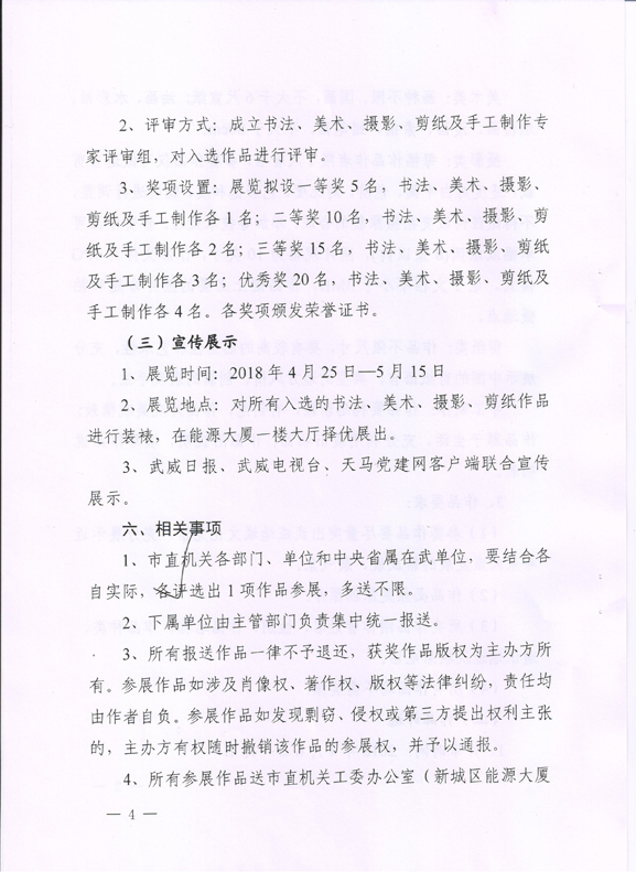 關于組織參加武威市直屬機關“不忘初心 牢記使命”藝術作品展的通知