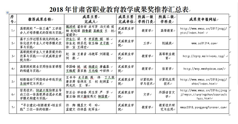附件: 2018年甘肅省職業(yè)教育教學(xué)成果獎(jiǎng)推薦匯總表
