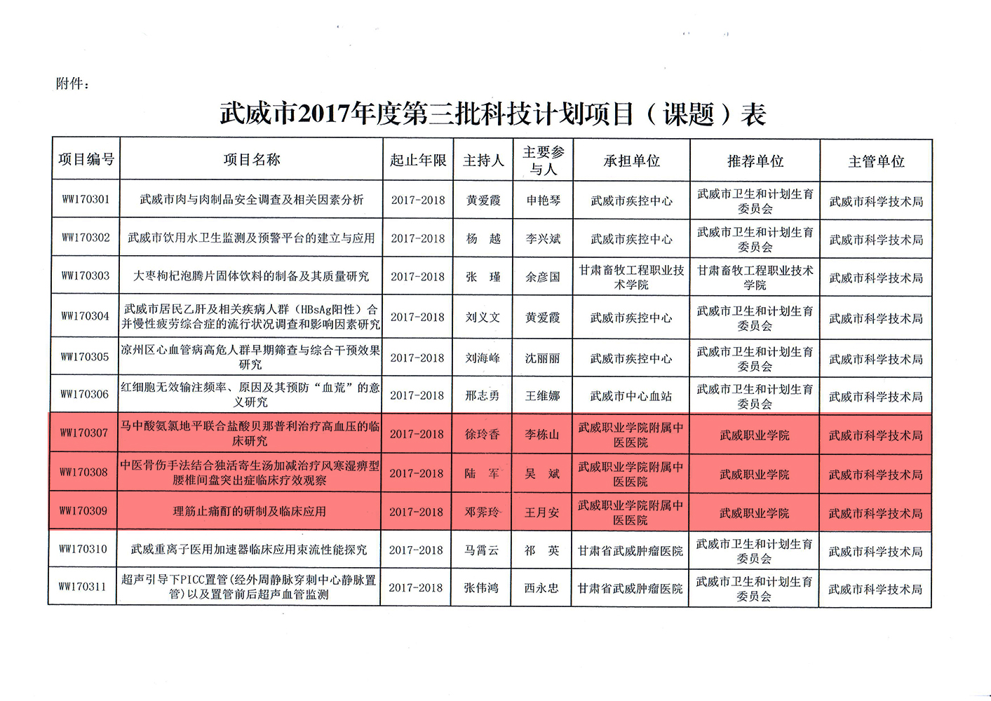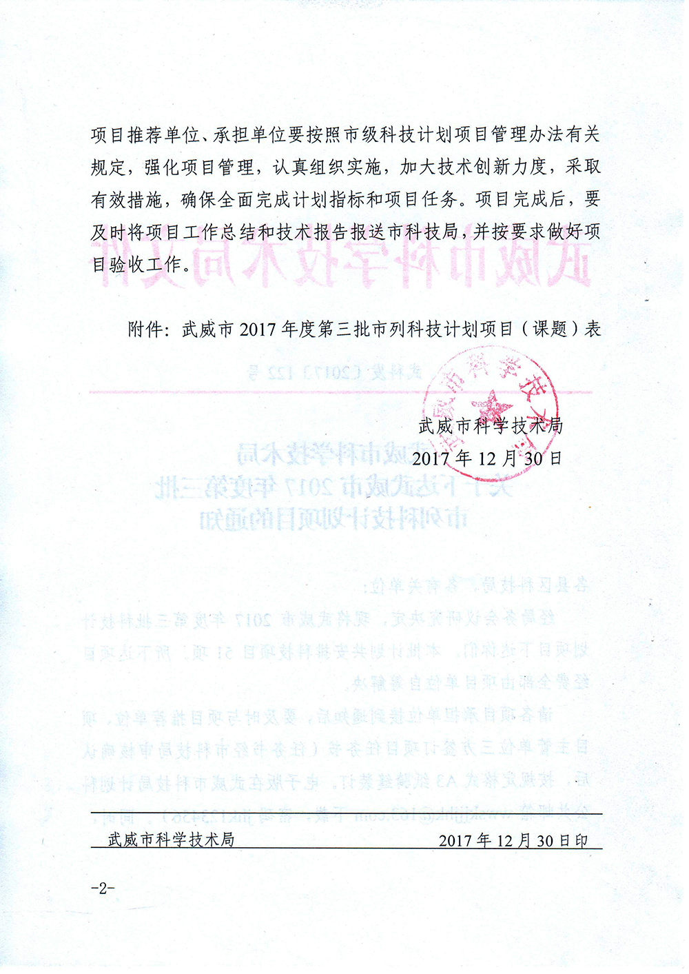轉(zhuǎn)發(fā)武威市科學(xué)技術(shù)局關(guān)于下達武威市2017年度第三批市列科技計劃項目的通知