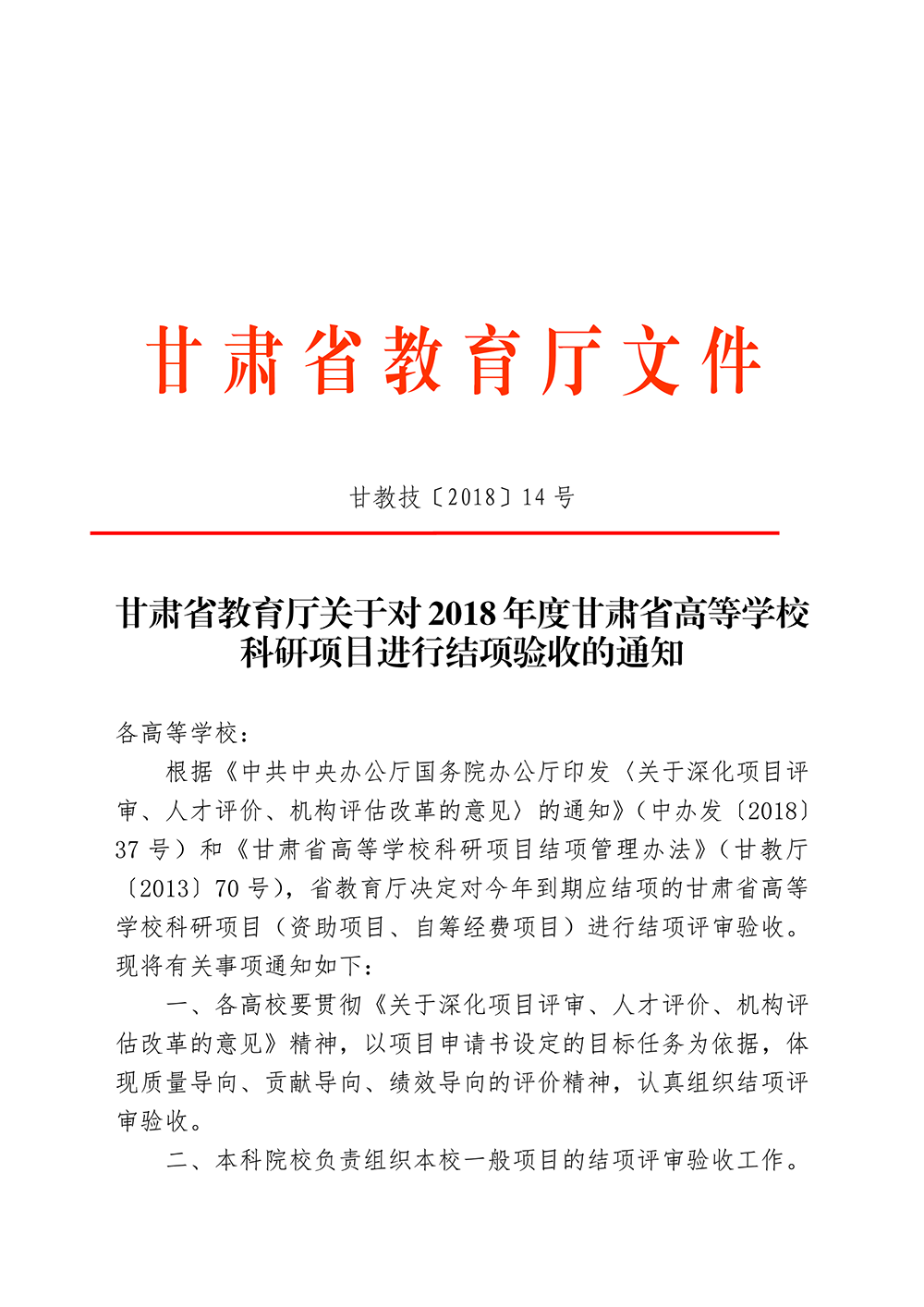 轉(zhuǎn)發(fā)甘肅省教育廳關于對2018年度甘肅省高等學校科研項目進行結項驗收的通知