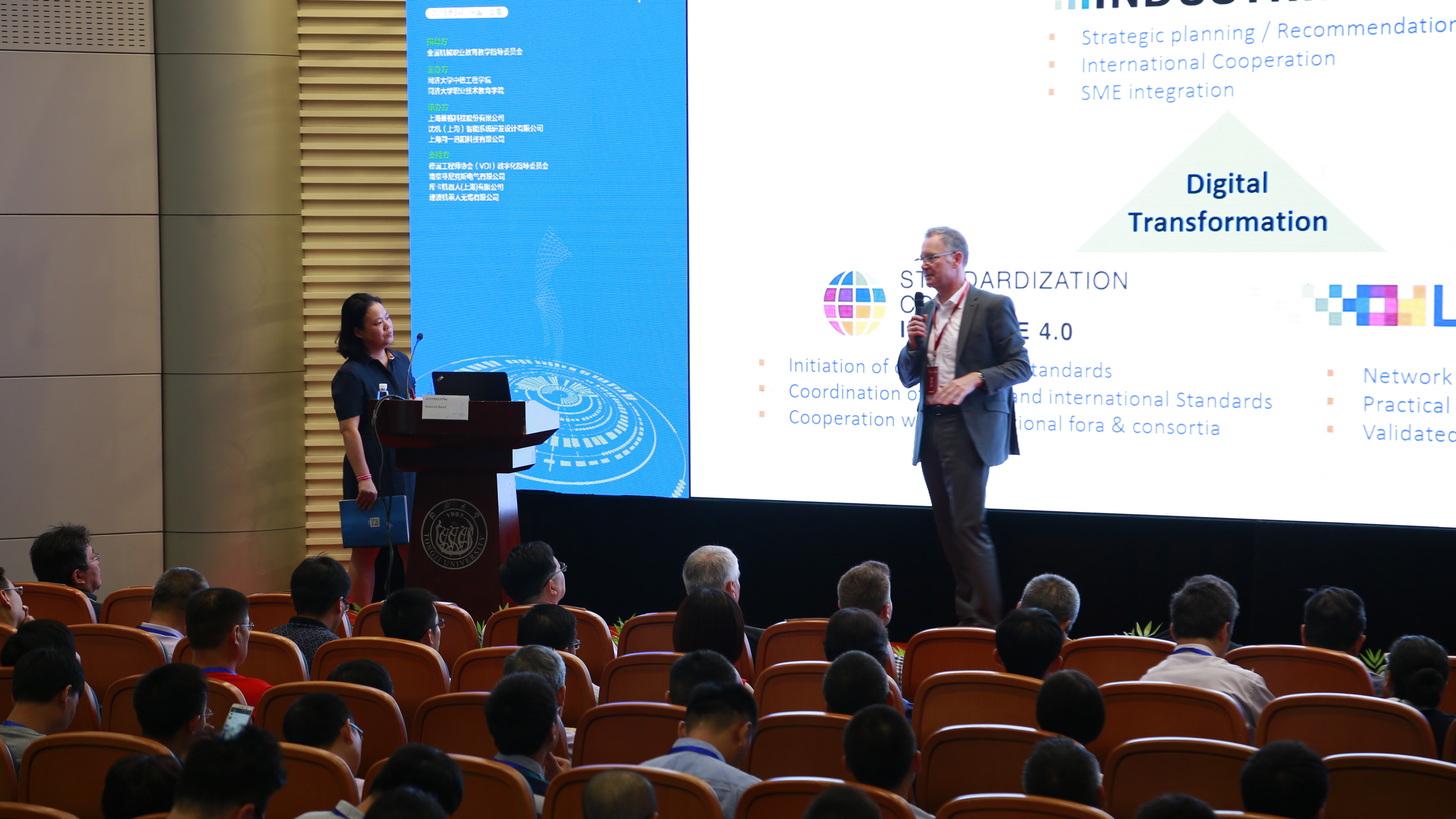??? 德國(guó)工業(yè)4.0標(biāo)準(zhǔn)制定委員會(huì)主席Roland Bent,對(duì)德國(guó)工業(yè)4.0標(biāo)準(zhǔn)的新發(fā)展進(jìn)行分享,為與會(huì)者提供了極具思想開放和思維拓展的窗口,以及智能制造產(chǎn)教融合的理論實(shí)踐依據(jù)。德國(guó)工程師協(xié)會(huì)教授Christian-Andreas Schumann論述了在全球化和數(shù)字化背景下教育領(lǐng)域網(wǎng)絡(luò)化協(xié)作的重要性,其研究領(lǐng)域的專業(yè)度和內(nèi)容的豐富性令與會(huì)者大呼痛快。