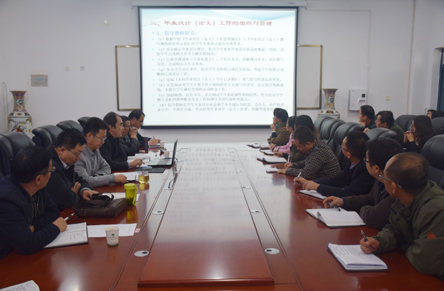 畢業(yè)設(shè)計(jì)是學(xué)生在校學(xué)習(xí)的最后一個(gè)環(huán)節(jié),也是最重要的一個(gè)環(huán)節(jié)。使學(xué)生由學(xué)校學(xué)習(xí)理論知識(shí)向社會(huì)實(shí)踐過渡轉(zhuǎn)變的一個(gè)重要環(huán)節(jié),也是對(duì)所學(xué)知識(shí)綜合應(yīng)用的一個(gè)過程。副院長(zhǎng)姚翔飛要求全體教師認(rèn)真學(xué)習(xí)領(lǐng)會(huì),深入研究,將各位專家教授講解的內(nèi)容內(nèi)化吸納,積極承擔(dān)并高質(zhì)量的完成學(xué)院2017屆畢業(yè)生的畢業(yè)設(shè)計(jì)指導(dǎo)工作。為學(xué)院不斷提升教育教學(xué)水平,奠定堅(jiān)實(shí)的基礎(chǔ)。
