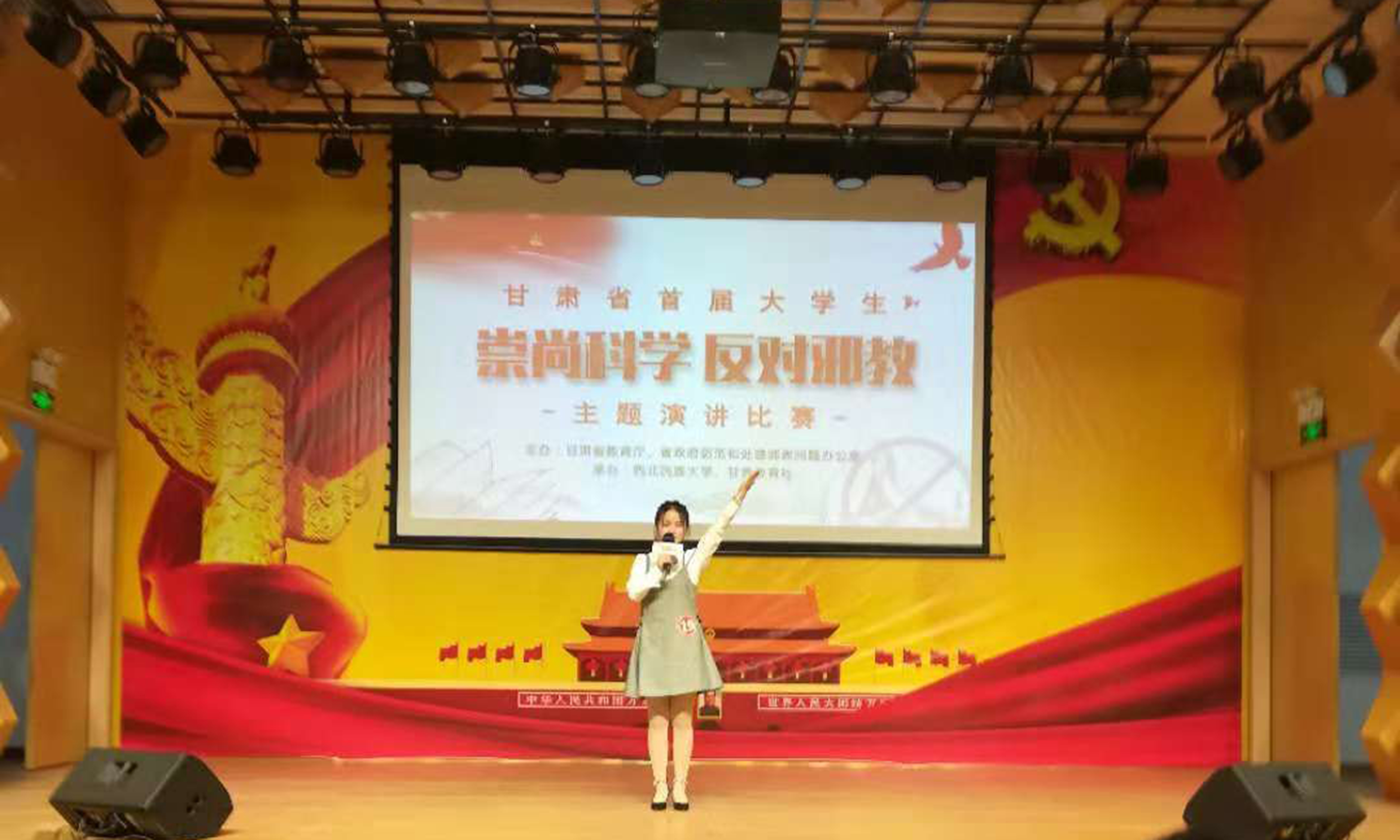 10月26日,由省教育廳、省政府防范和處理邪教問題辦公室聯(lián)合主辦的甘肅省首屆大學(xué)生“崇尚科學(xué)反對邪教”主題演講比賽在西北民族大學(xué)舉行。比賽共有蘭州大學(xué)、西北民族大學(xué)、西北師范大學(xué)、蘭州資源環(huán)境職業(yè)技術(shù)學(xué)院等43所高校的43名選手參賽。