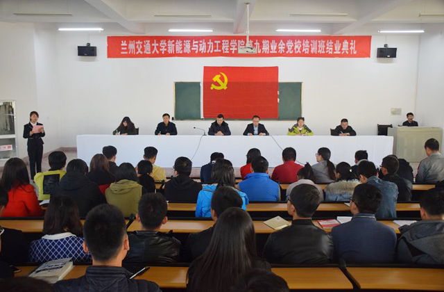 結(jié)業(yè)典禮由任陶主持。高蕊宣讀了《蘭州交通大學(xué)新能源與動(dòng)力工程學(xué)院關(guān)于第九期業(yè)余黨校培訓(xùn)班結(jié)業(yè)情況的通報(bào)》。本次培訓(xùn)歷時(shí)半個(gè)多月,共有120名學(xué)員參加培訓(xùn),保證24學(xué)時(shí)的教學(xué)。通過(guò)課堂紀(jì)律、上課考勤、撰寫(xiě)心得體會(huì)和結(jié)業(yè)考試等方面的考查,共有40名擬發(fā)展對(duì)象和73名入黨積極分子成績(jī)合格,予以結(jié)業(yè),合格率為94.17%。任陶宣讀了本次培訓(xùn)成績(jī)合格的學(xué)員名單。學(xué)員代表孟杰同學(xué)在發(fā)言中總結(jié)了在業(yè)余黨校學(xué)習(xí)的收獲,表示在今后要努力學(xué)習(xí),積極工作,嚴(yán)格要求自己,明確追求與理想,不懈拼搏,爭(zhēng)取早日成為一名光榮的中國(guó)共產(chǎn)黨黨員。