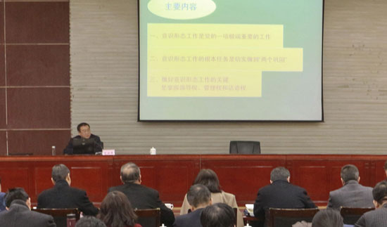 肖安鹿在題為《習近平總書記關(guān)于意識形態(tài)工作的思考》的講座中,從意識形態(tài)工作是黨的一項極端重要的工作,意識形態(tài)工作的根本任務是貫徹落實“兩個鞏固”,做好意識形態(tài)工作的主要工作是掌握領(lǐng)導權(quán)、管理權(quán)和話語權(quán)等三個方面,為學員們作了深入淺出地解讀。