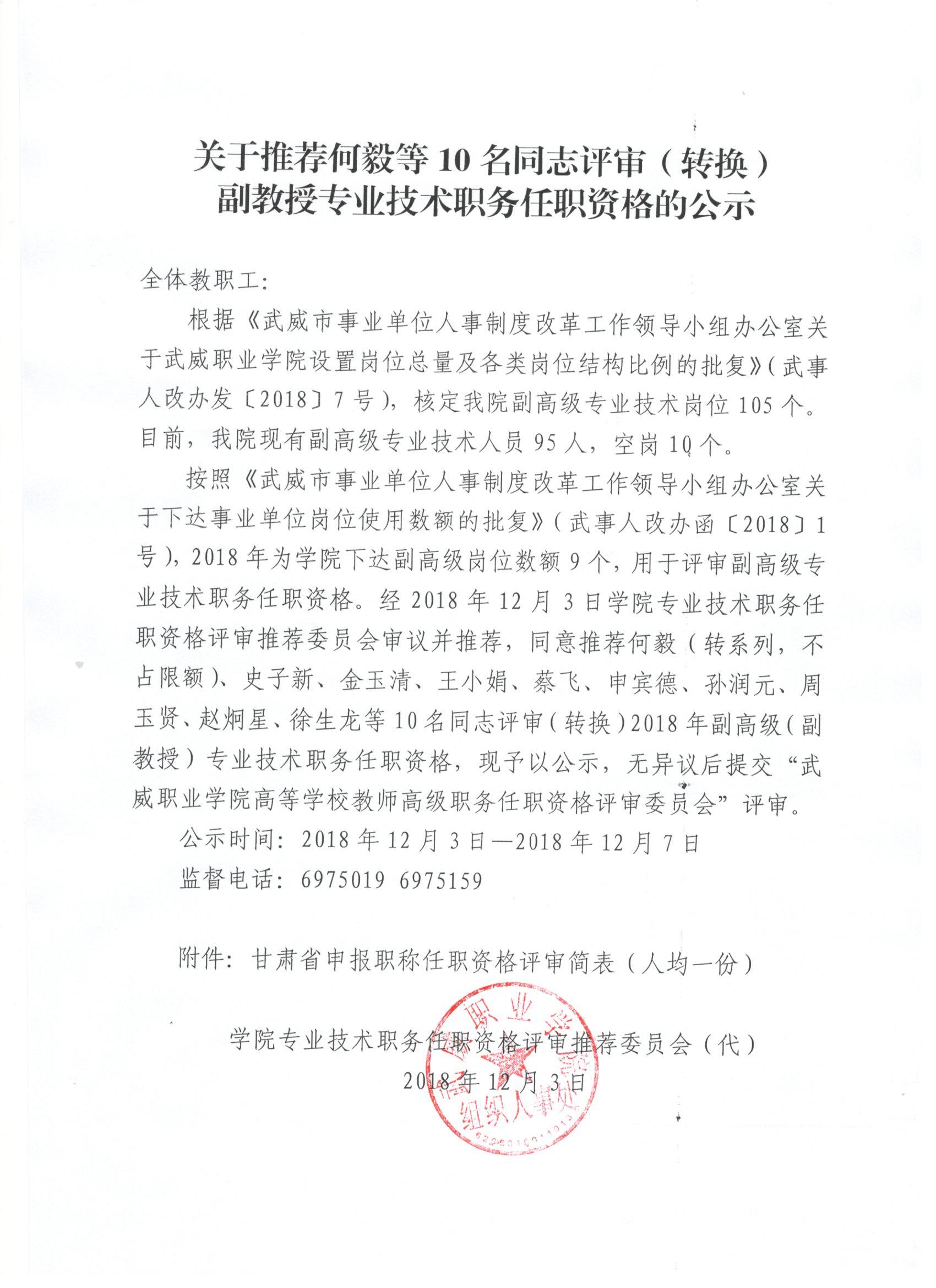 關(guān)于推薦何毅等10名同志評審(轉(zhuǎn)換)副教授專業(yè)技術(shù)職務(wù)任職資格的公示