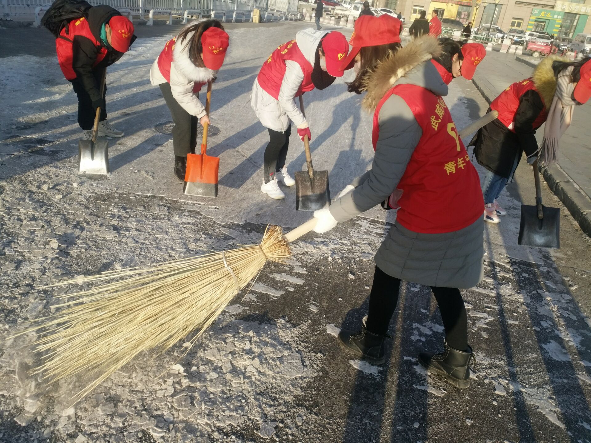 當(dāng)天上午,志愿者們攜著冬日的暖陽(yáng)將愛撒播在的服務(wù)的每一個(gè)角落,忙的不亦樂乎。學(xué)生志愿者一個(gè)個(gè)身穿紅馬夾穿梭在火車站及汽車站一帶幫助行人提東西、拉皮箱,清掃路面積雪、清除街道長(zhǎng)期殘留的垃圾等。志愿者們用自己的雙手拾撿著行人留下的煙頭和瓜子皮,他們不畏嚴(yán)寒,默默地奉獻(xiàn)著熱情和溫暖。經(jīng)過的人們紛紛向志愿者們投向了贊許與致謝的目光。