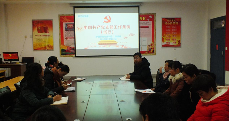 為進一步加強黨支部標準化建設(shè), 12月27日,護理系黨總支在明遠樓103黨員活動室開展學習活動,護理系黨總支書記張建輝以《中國共產(chǎn)黨支部工作條例(試行)》為題,為參會黨員們進行專題黨課輔導,促進全體黨員對黨建工作的認識學習。