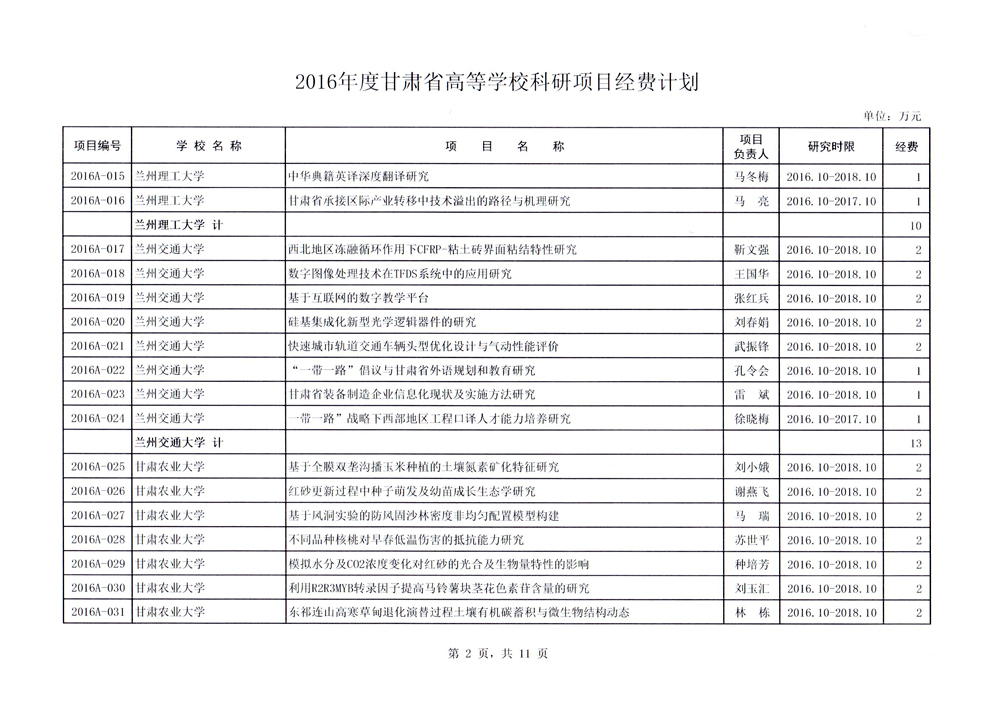 轉(zhuǎn)發(fā)甘肅省財政廳 教育廳文件 關(guān)于下達2016年度高校導師科研經(jīng)費和“2011計劃”補助經(jīng)費的通知