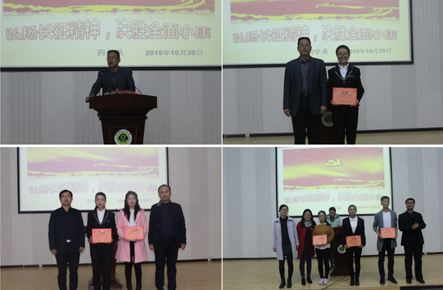 為紀(jì)念紅軍長征勝利80周年,激發(fā)師生弘揚(yáng)偉大的長征精神,同時(shí)為豐富校園文化生活,展示青春正能量,藥學(xué)系團(tuán)總支依據(jù)院團(tuán)委的通知精神和系團(tuán)學(xué)工作委員會(huì)關(guān)于增加學(xué)生課余活動(dòng)的會(huì)議要求,于10月30日在正德廳組織開展了“傳承長征精神,筑我青春夢想”主題演講比賽。藥學(xué)系主任魏潤明出席了本次活動(dòng),各班班主任擔(dān)任本次比賽評委,2016級全體學(xué)生和2015級各班學(xué)生代表觀看了比賽。
