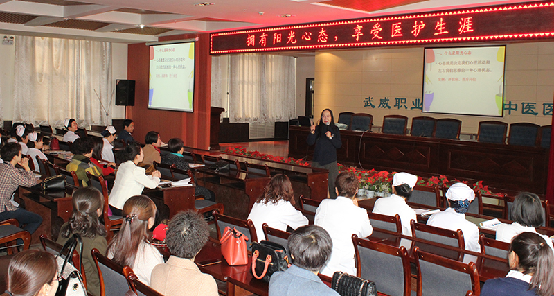 在三八國際婦女節(jié)來臨之際,為提升醫(yī)院女職工心理健康素質(zhì),3月6日下午4時,學(xué)院附屬中醫(yī)醫(yī)院邀請涼州區(qū)教育局馮亞瑾老師在醫(yī)院內(nèi)科七樓會議室為全院100多名女職工代表開展心理健康教育專題輔導(dǎo)講座。