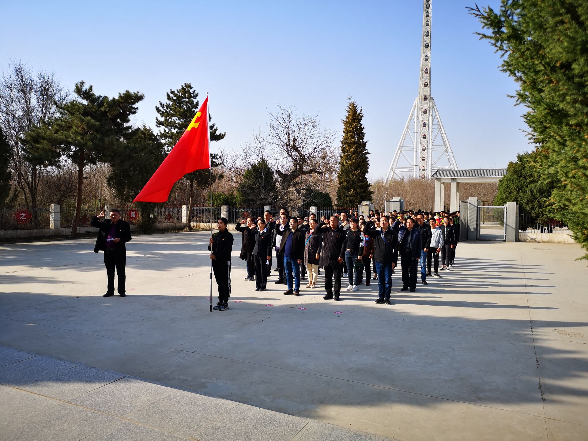 在革命烈士紀念碑下,全體黨員敬獻了花籃并向革命先烈鞠躬默哀。在系主任李欣同志的帶領(lǐng)下,全體黨員佩戴黨徽,面對鮮紅的黨旗,舉起右手,莊嚴地重溫了入黨誓詞,用響亮的誓言表達了對黨的忠誠和熱愛。隨后,全體黨員參觀了烈士紀念館,館內(nèi)一幅幅珍貴的照片,生動地再現(xiàn)了當(dāng)年老一輩革命家的不屈不撓、艱苦奮斗的革命精神和高尚情操。