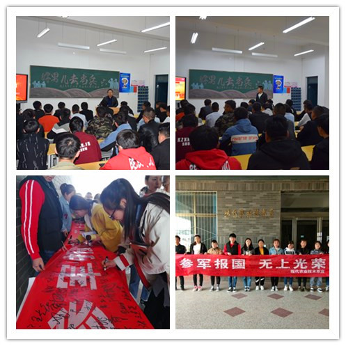 首先蔡海老師向同學(xué)們細(xì)致地講解了今年的征兵條件、報(bào)名方法及相關(guān)優(yōu)待政策,深入宣傳依法服兵役的積極意義,鼓勵(lì)適齡青年積極報(bào)名應(yīng)征,報(bào)效祖國(guó)。同時(shí)邀請(qǐng)2017級(jí)設(shè)施農(nóng)業(yè)與裝備大專班趙文文同學(xué)做了個(gè)人事跡匯報(bào)。該生曾在陸軍某部服役,現(xiàn)光榮退伍,回校就讀。交流中,他鼓勵(lì)同學(xué)們要敢于有夢(mèng)、敢于追夢(mèng)、敢于圓夢(mèng),讓青春在軍營(yíng)的歷練中、在為祖國(guó)的奉獻(xiàn)中閃光。他還生動(dòng)的講述了部隊(duì)的生活和訓(xùn)練情況,這段經(jīng)歷使他收獲了遠(yuǎn)大的理想信念,培養(yǎng)了良好的行為習(xí)慣,練就了強(qiáng)健的身體,這些將會(huì)讓他終身受益?;顒?dòng)最后進(jìn)行了“參軍報(bào)國(guó),無(wú)上光榮”主題簽名儀式。