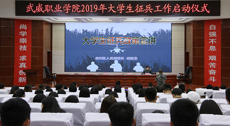 涼州區(qū)人武部部長闞延貴在啟動儀式上宣講了2019年大學生應征入伍的優(yōu)惠政策。