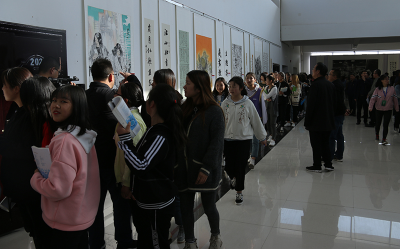 趙明宣布“不忘初心,牢記使命”武威美術(shù)書(shū)法作品交流展開(kāi)幕。隨后,學(xué)院師生觀(guān)看欣賞了展覽作品。