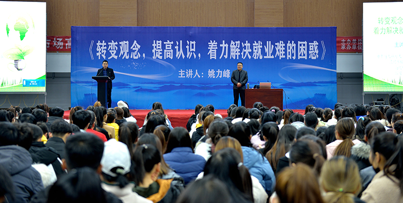 為貫徹2020屆全國普通高校畢業(yè)生就業(yè)創(chuàng)業(yè)工作網(wǎng)絡視頻會議精神,學院以習近平新時代中國特色社會主義思想為指導,深入落實黨中央、國務院關(guān)于促進高校畢業(yè)生就業(yè)創(chuàng)業(yè)的一系列重大決策部署,把畢業(yè)生就業(yè)工作擺在最突出位置,確保畢業(yè)生就業(yè)大局穩(wěn)定。12月14日上午,學院組織2020屆畢業(yè)生,在體育館參加了題為《轉(zhuǎn)變觀念,提高認識,著力解決就業(yè)難得困惑》的專家講座,引導畢業(yè)生轉(zhuǎn)變觀念、積極就業(yè)。講座由省人社廳人力資源市場檔案管理部部長姚力峰主講,招生就業(yè)處副處長董鵬主持。