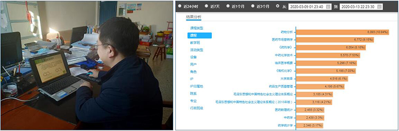 截止3月13日,全院各教學系采用在線教學方式授課教師共272人,開課315門,比前兩周增加了31門,所有非實踐類課程均已開展在線教學;學院第三周授課總學時達到1680學時,教師參加在線授課共計1787人次。