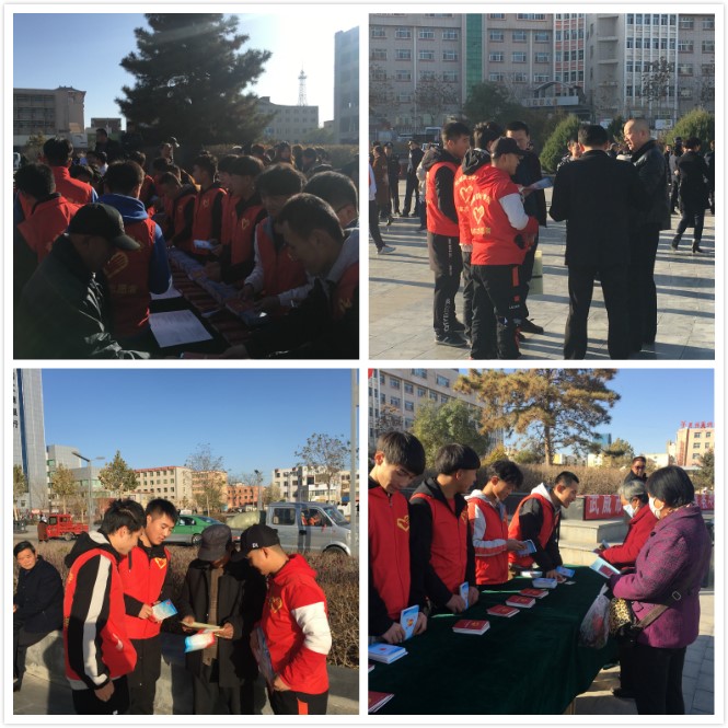 為進一步助力全國文明城市創(chuàng)建,全面深入開展普法工作,切實提升廣大市民的尊法、用法和守法意識,營造濃厚的全民普法氛圍,11月15日上午,學院應(yīng)市司法局、團市委的要求,派出機械制造系“依法治國”宣講團,到文化廣場參加武威市“法律進家庭,服務(wù)解民憂”主題活動啟動儀式。
