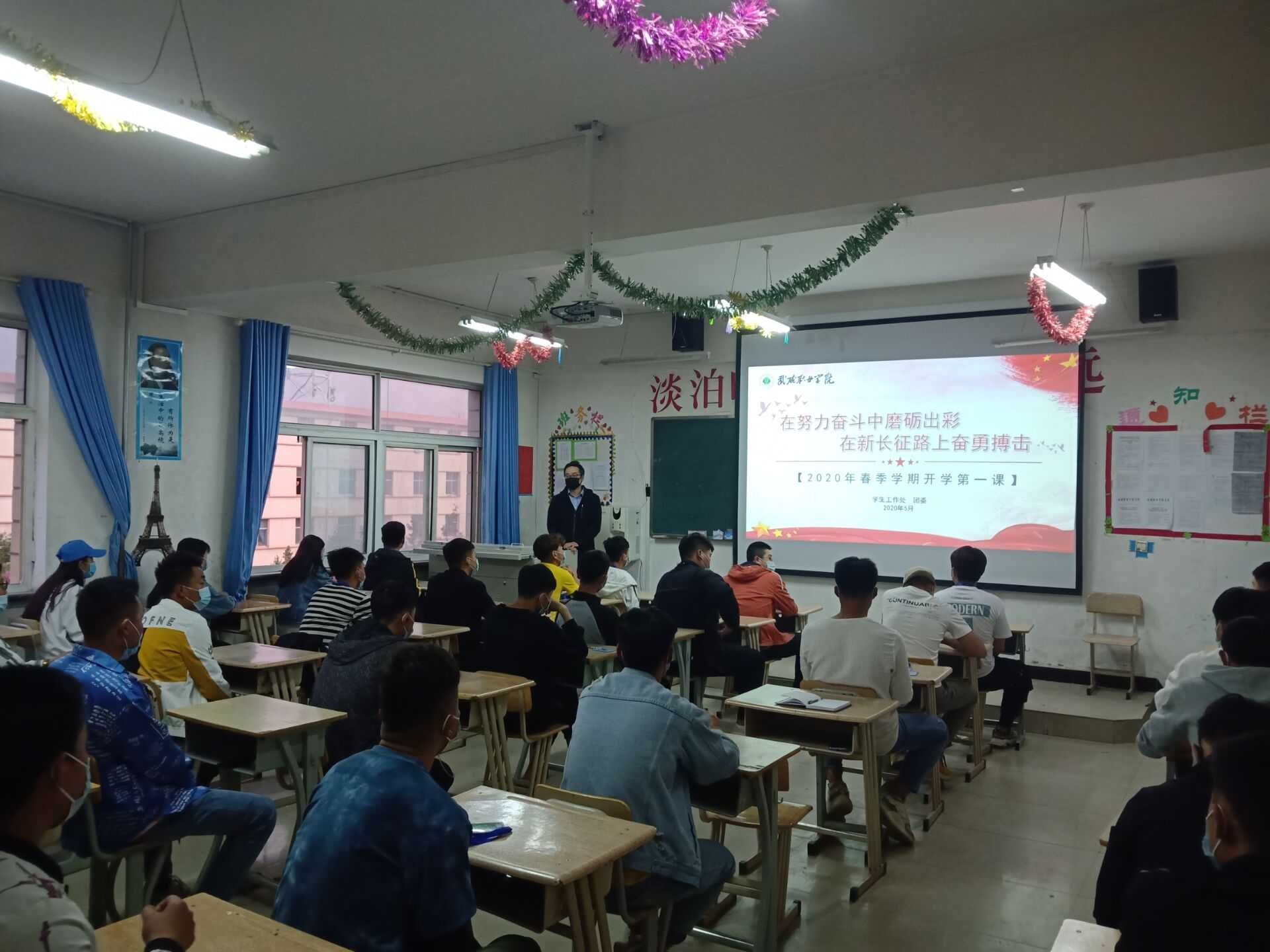? ? ? 通過同上“開學(xué)第一課”,引導(dǎo)學(xué)生對黨和國家在本次疫情當(dāng)中做出的果斷決策,以及廣大醫(yī)務(wù)工作者和其他各條戰(zhàn)線的工作人員所做出的努力進(jìn)行了回顧。對于疫情防控的相關(guān)知識,包括個(gè)人衛(wèi)生消毒,個(gè)人防護(hù)等工作進(jìn)行了知識普及。對學(xué)院封閉式管理期間的各項(xiàng)規(guī)章制度以及教學(xué)秩序等工作進(jìn)行安排部署。對于封閉式管理期間學(xué)生的心理健康以及自我調(diào)試進(jìn)行了簡單的指導(dǎo)。