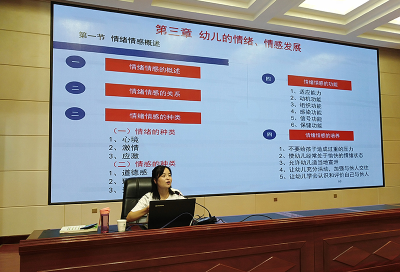 本次培訓(xùn)對(duì)象為來(lái)自民勤、古浪、天??h和涼州區(qū)民辦幼兒園教師中未取得教師資格證的人員共計(jì)120人,培訓(xùn)內(nèi)容為筆試、面試內(nèi)容輔導(dǎo),經(jīng)驗(yàn)交流和答疑互動(dòng)。8月17日—18日為期2天的培訓(xùn)工作中,何毅圍繞“幼兒教師資格考試面試技巧和教學(xué)能力測(cè)試”作專題輔導(dǎo)培訓(xùn),付成榮、秦娜分別圍繞“學(xué)前兒童教育學(xué)以及教育法規(guī)”、“學(xué)前兒童心理學(xué)”作了專題輔導(dǎo)培訓(xùn)。學(xué)院教師講課認(rèn)真嚴(yán)謹(jǐn),為參訓(xùn)學(xué)員作了全面、詳實(shí)的知識(shí)講授、經(jīng)驗(yàn)指導(dǎo)和解疑答惑,培訓(xùn)工作圓滿結(jié)束,得到了市教育局的充分肯定和參訓(xùn)學(xué)員的一致好評(píng)。