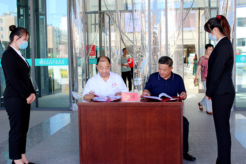 趙明同志代表武威職業(yè)學(xué)院,張?zhí)斓峦敬砦渫兄嗅t(yī)醫(yī)院共同簽訂了教師實(shí)踐基地協(xié)議。