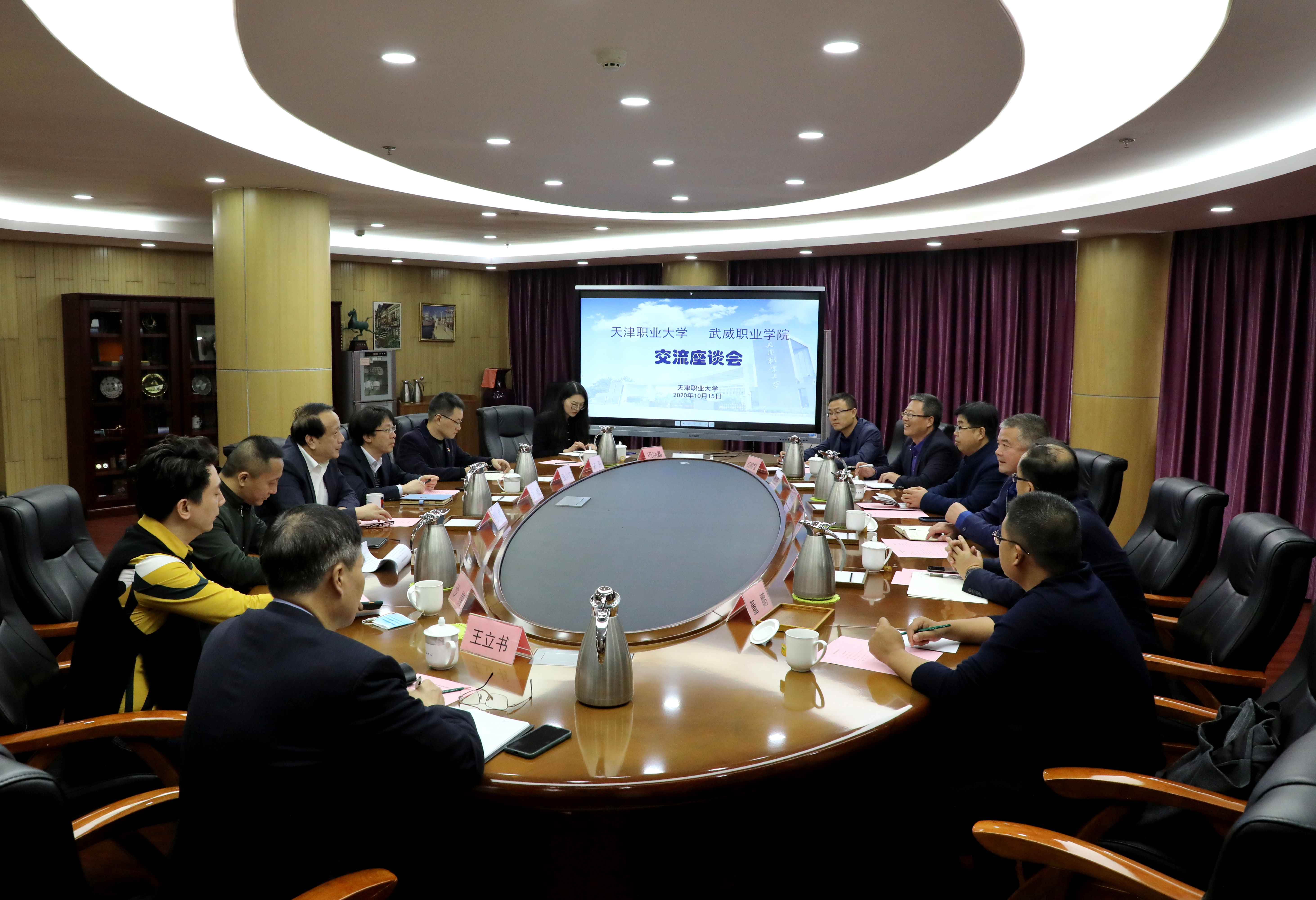 考察組一行分別與天津醫(yī)學(xué)高等??茖W(xué)校、天津職業(yè)大學(xué)進行了深入交流座談。天津醫(yī)高專是國家雙高校中唯一一所衛(wèi)生類學(xué)校,在座談會上,醫(yī)高專為學(xué)院醫(yī)藥衛(wèi)生類專業(yè)群建設(shè)提出了指導(dǎo)意見,介紹了醫(yī)高?!?.5+1.5”學(xué)制安排促就業(yè)、教學(xué)系黨委行政雙組長抓就業(yè)、就業(yè)工作經(jīng)費動態(tài)調(diào)整引領(lǐng)就業(yè)的工作機制,并就下一步共同培養(yǎng)師資、互派青年骨干教師交流學(xué)習(xí)達成共識。天津職業(yè)大學(xué)是《天津—甘肅職業(yè)教育協(xié)作實施方案》合作院校,在天津職大座談會上,兩校圍繞專業(yè)群組群、產(chǎn)業(yè)學(xué)院組建模式、教學(xué)模式、探索產(chǎn)業(yè)學(xué)院建設(shè)、混合所有制二級學(xué)院建設(shè)、就業(yè)工作“一對一”模式、學(xué)生管理經(jīng)驗和成果進行了分享與交流。劉斌校長出席并主持會議,對學(xué)院的雙高建設(shè)給予了特別關(guān)心與指導(dǎo)。他希望,雙方作為兄弟院校,要進一步加強交流合作,努力為推動?xùn)|西協(xié)作和武威職業(yè)教育高質(zhì)量發(fā)展做出新的更大的貢獻。