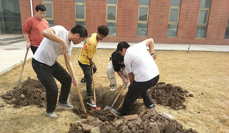 活動(dòng)中,師生代表熱情高漲、干勁十足,按照專業(yè)人員的植樹指導(dǎo),三人一組,緊密分工協(xié)作、熱情高漲、干勁十足,揮鍬挖窩、扶苗培土、提桶澆水,道道工序細(xì)致認(rèn)真、有條不紊。經(jīng)過師生代表近四小時(shí)的忙碌勞動(dòng),三百株新栽的樹苗迎風(fēng)挺立,為學(xué)院增添上一抹“新綠”,也將綠色發(fā)展觀念“種”進(jìn)每位師生心中。