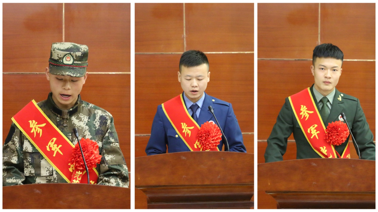 大會上,高鵬堂宣讀了2021年春季入伍學(xué)生名單和近兩年退役復(fù)學(xué)學(xué)生名單;參會領(lǐng)導(dǎo)為應(yīng)征入伍的12名新兵佩戴紅花,贈送紀念品,為退役復(fù)學(xué)學(xué)生代表佩戴紅花,頒發(fā)榮譽證書。