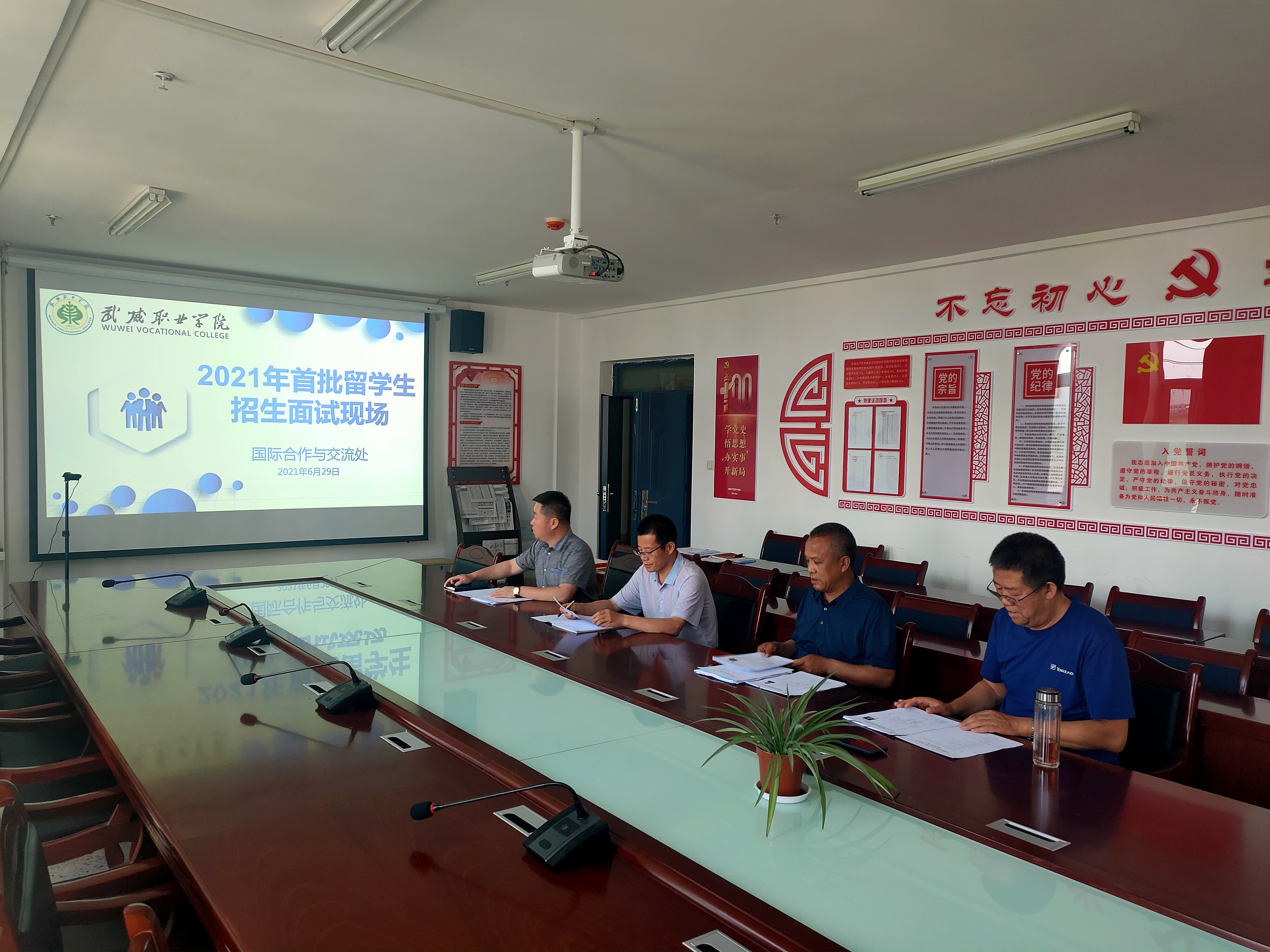開展來華留學(xué)生招生面試工作旨在通過面對面地觀察、交談等雙向溝通方式,有效測評候選國際學(xué)生的能力素質(zhì)、個性品質(zhì)、來華動機(jī)、學(xué)習(xí)目標(biāo)等要素,以確保優(yōu)質(zhì)留學(xué)生生源來華學(xué)習(xí)。國際合作與交流處處長潘從民及國際合作與交流處工作人員參加面試。
