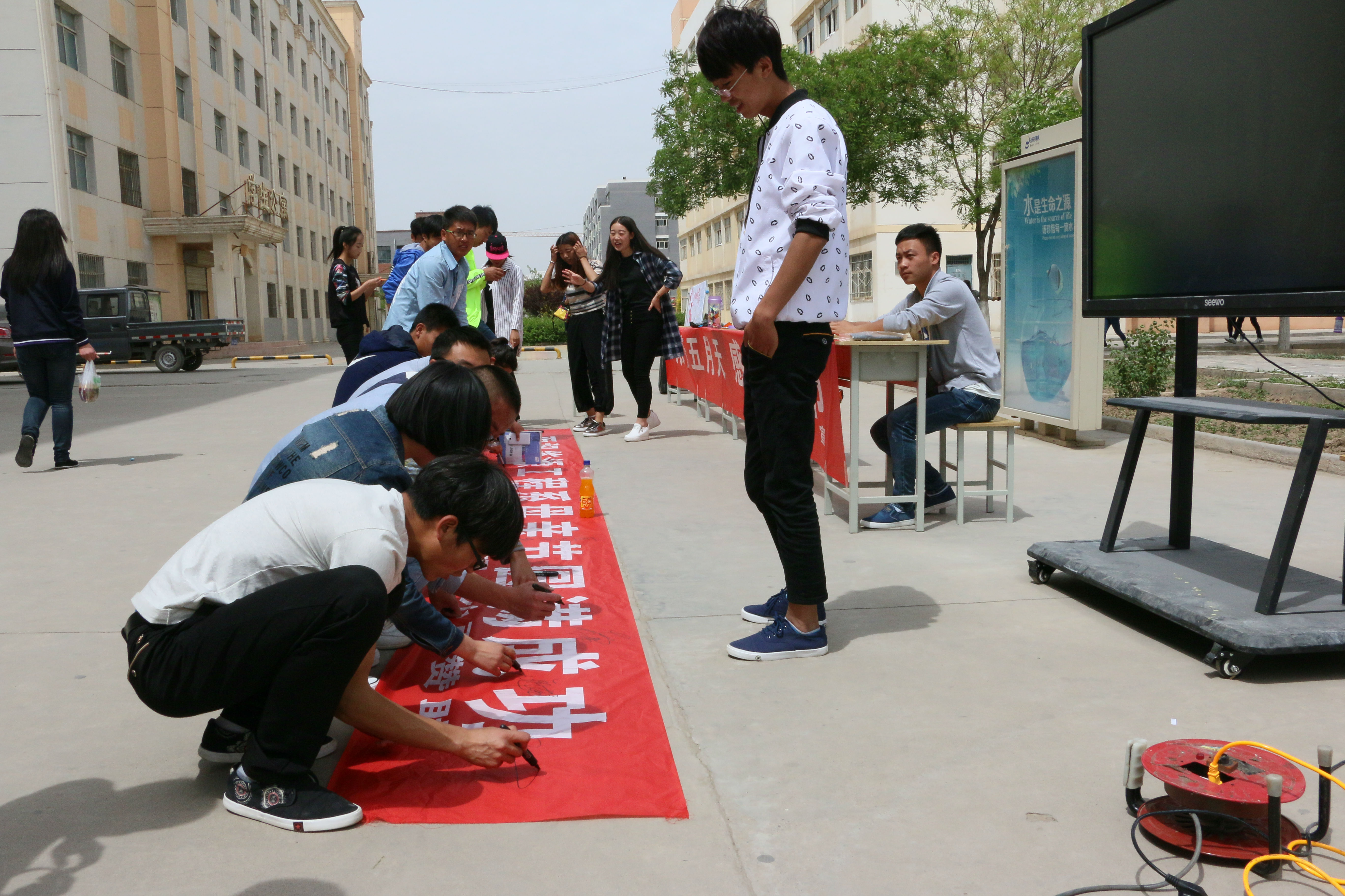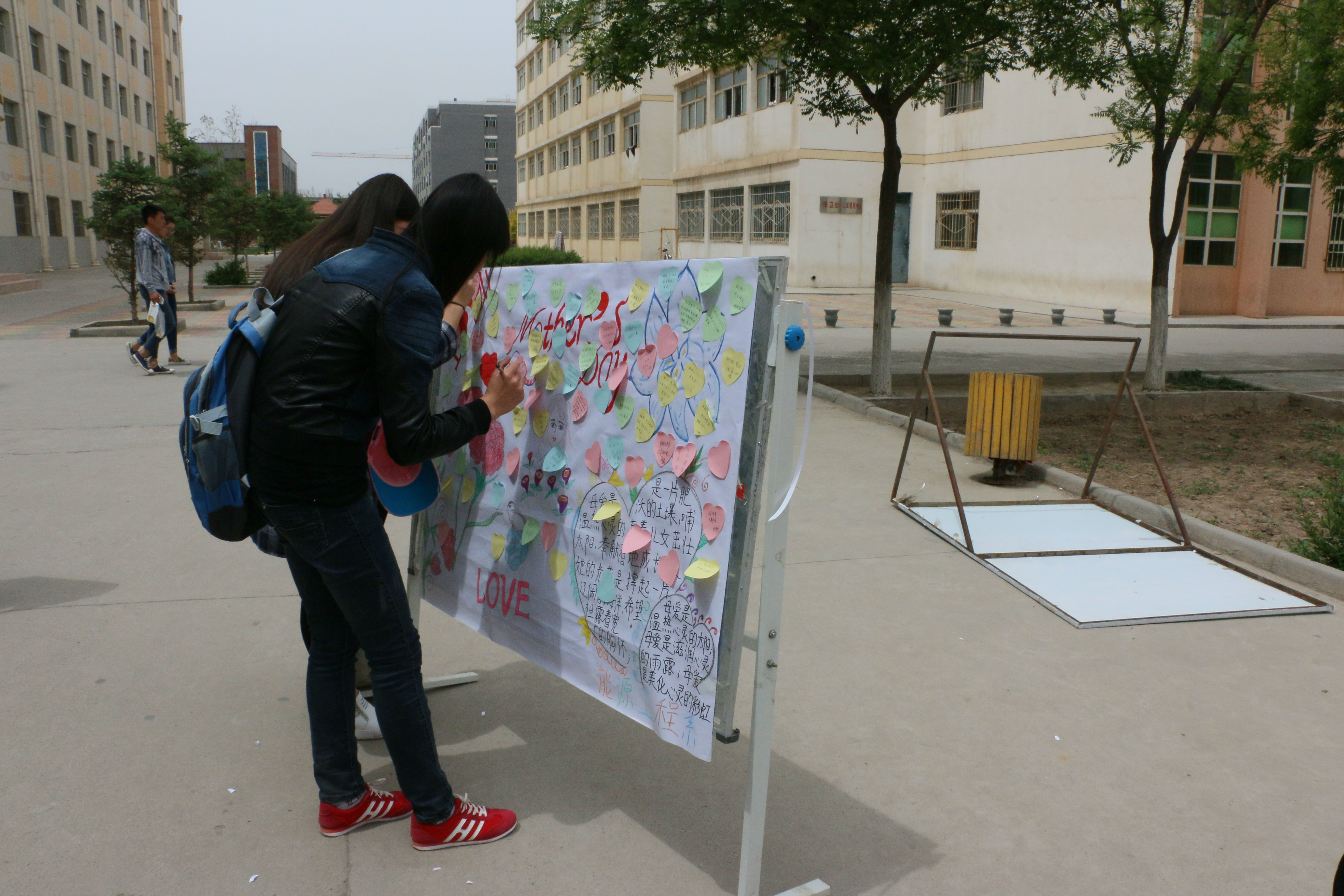 今天早晨十一點(diǎn)左右,能源系全體學(xué)生會(huì)成員以為這次的活動(dòng)準(zhǔn)備好了一切,有母親節(jié)的海報(bào)、母親節(jié)許愿瓶、對(duì)媽媽想說(shuō)的話的展板、以及自己對(duì)媽媽祝福的簽名