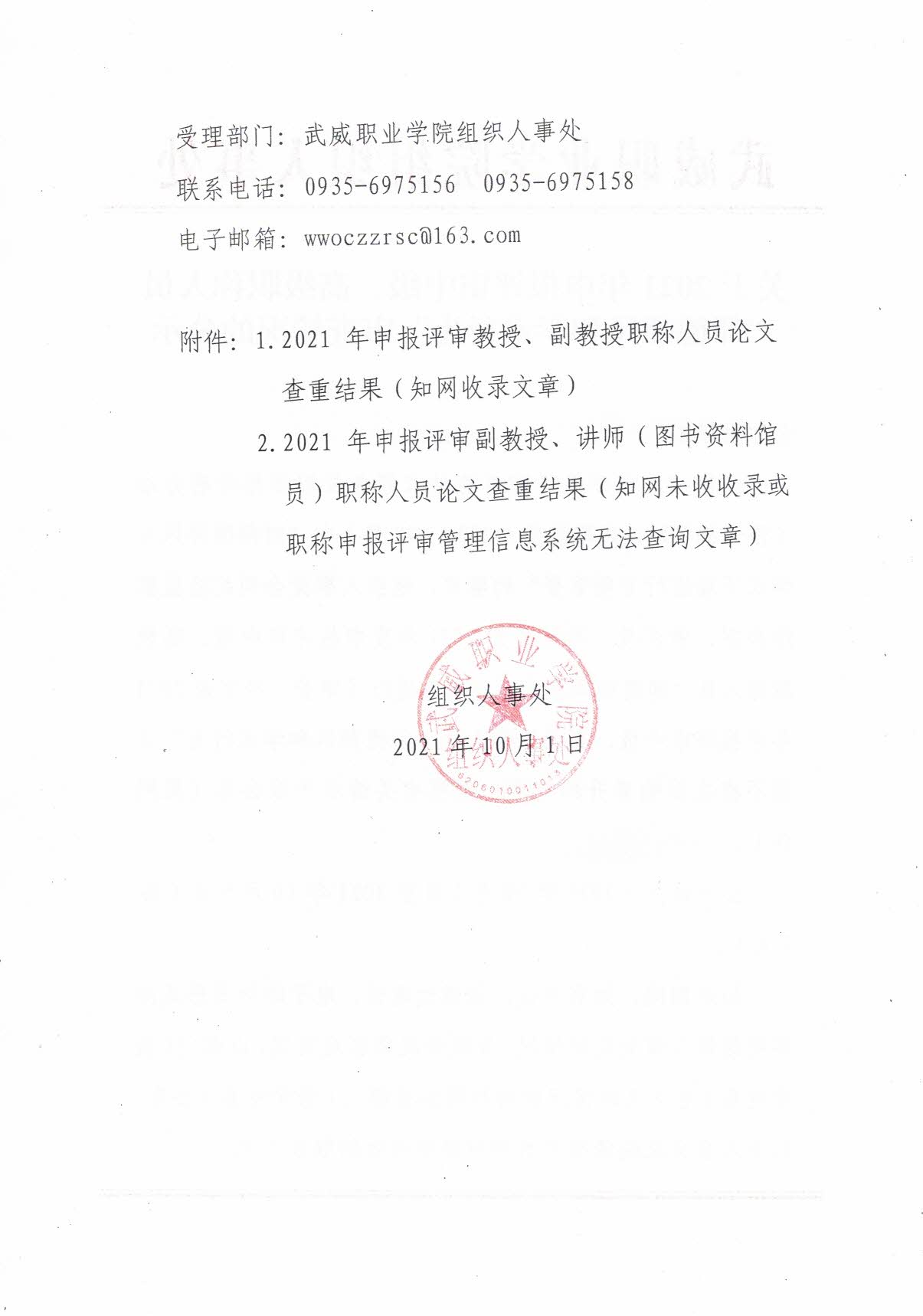 2021年申報(bào)評(píng)審教授、副教授、中級(jí)職稱人員論文查重結(jié)果