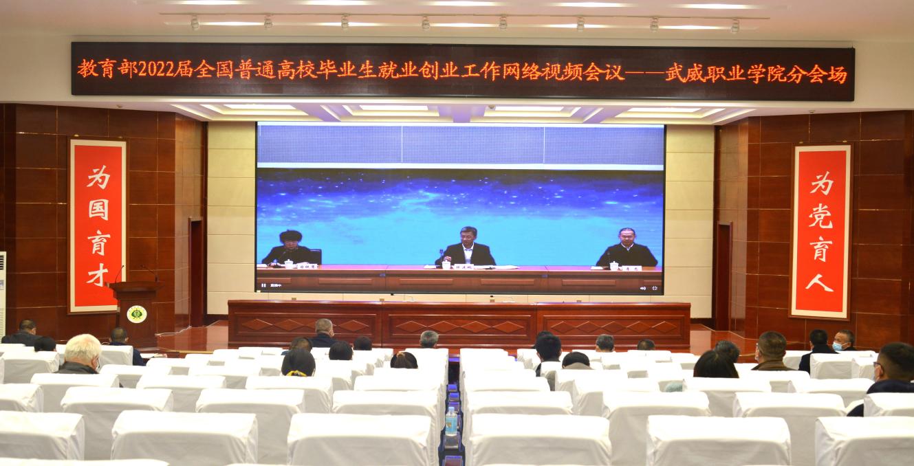 11月19日下午,教育部、人力資源社會(huì)保障部召開(kāi)2022屆普通高校畢業(yè)生就業(yè)視頻會(huì)議。教育部黨組書(shū)記、部長(zhǎng)懷進(jìn)鵬,人力資源社會(huì)保障部黨組成員、副部長(zhǎng)李忠出席會(huì)議并講話,教育部黨組成員、副部長(zhǎng)翁鐵慧主持會(huì)議。我院設(shè)立武威職業(yè)學(xué)院分會(huì)場(chǎng),學(xué)院黨委書(shū)記、院長(zhǎng)趙明,副院長(zhǎng)王守云,招就處、雙創(chuàng)中心、學(xué)工處相關(guān)負(fù)責(zé)同志,各教學(xué)院系黨總支書(shū)記、主任、就業(yè)工作輔導(dǎo)員及畢業(yè)班班主任共計(jì)86人,在學(xué)院學(xué)生發(fā)展中心菁英廳集中參加網(wǎng)絡(luò)視頻會(huì)議。