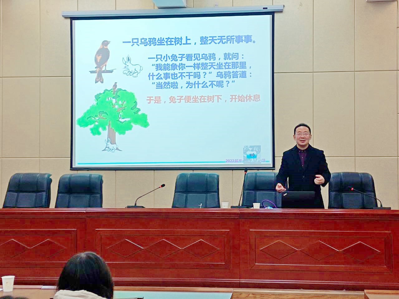 最后,金主任對同學(xué)們開展就業(yè)指導(dǎo)。期間,金主任以幽默風(fēng)趣的語言,結(jié)合自身經(jīng)歷,貼合實(shí)際講解,引導(dǎo)同學(xué)們樹立正確的就業(yè)觀和擇業(yè)觀,以積極的心態(tài)面對嚴(yán)峻的就業(yè)形勢。