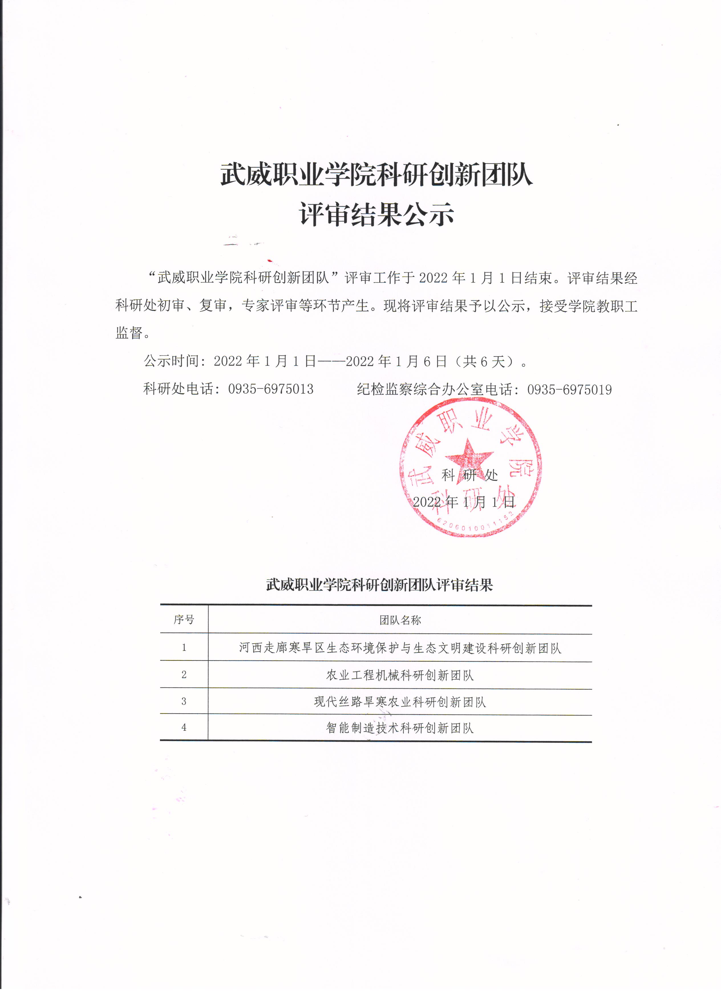 武威職業(yè)學(xué)院科研創(chuàng)新團(tuán)隊(duì)評(píng)審結(jié)果公示