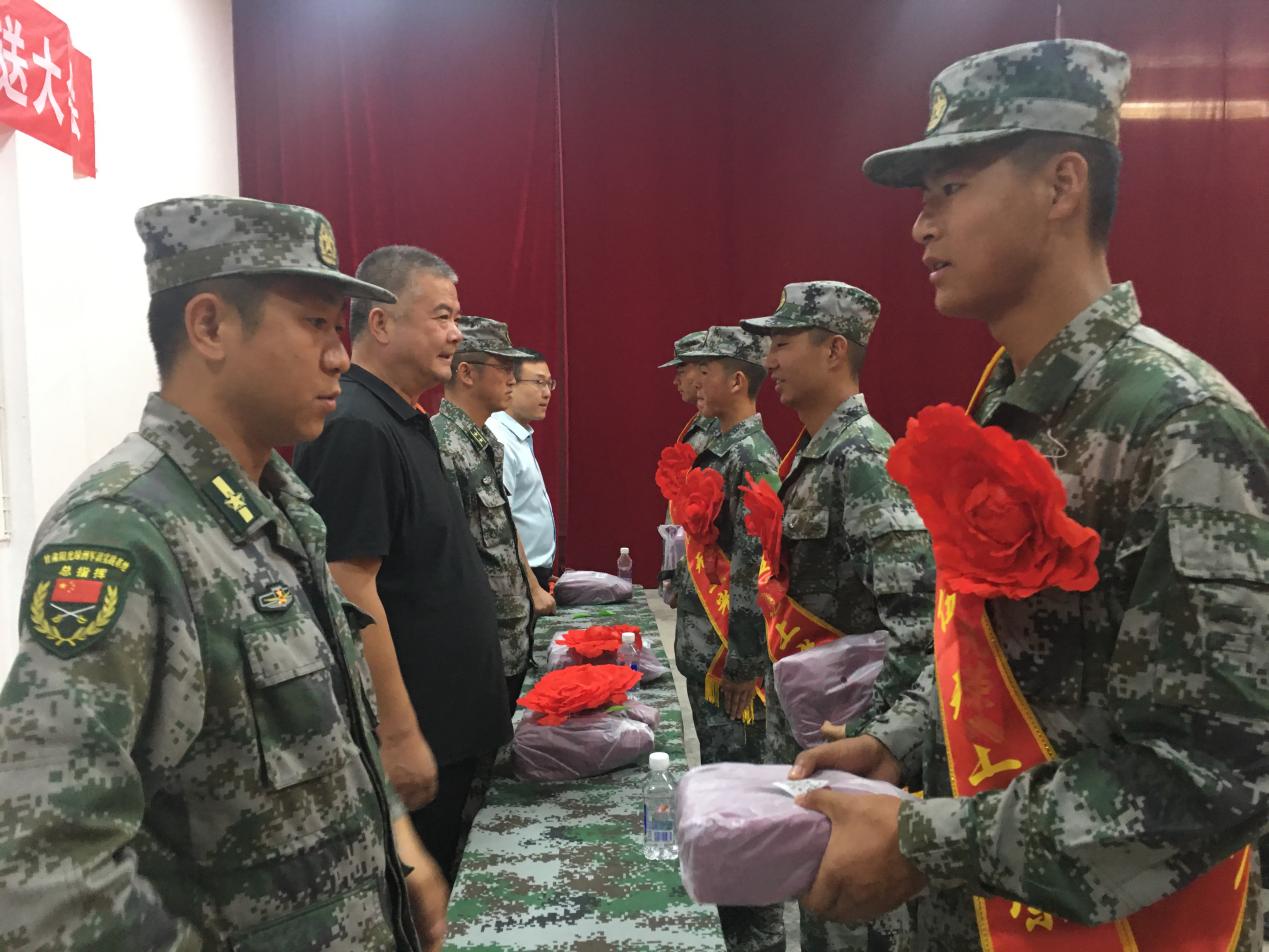 王守云詢問了同學(xué)們的近期訓(xùn)練、生活情況,為同學(xué)們送上了中秋節(jié)慰問品,并代表學(xué)院向應(yīng)征入伍的同學(xué)表示祝賀。