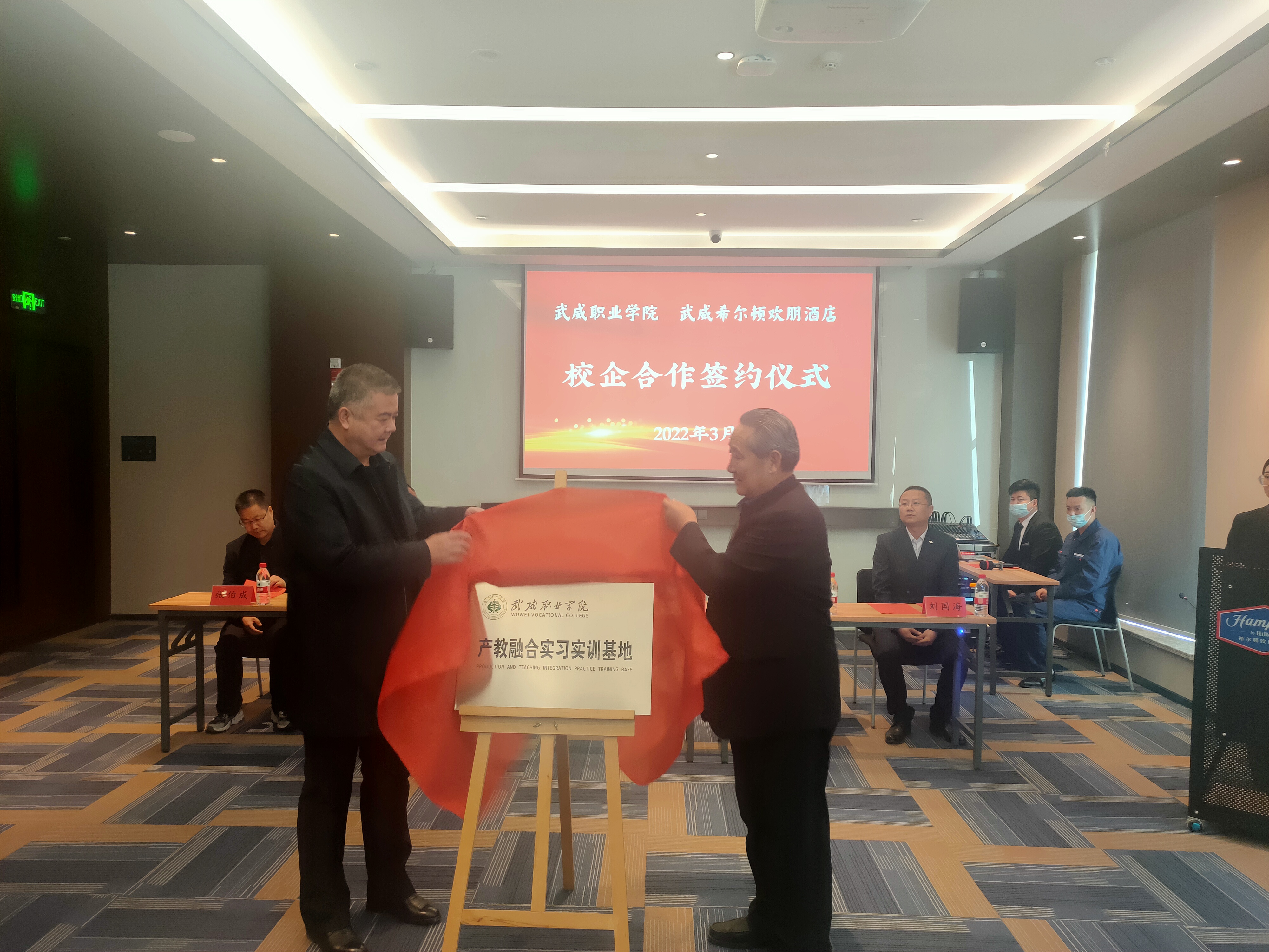 為深入貫徹落實(shí)教育部2022屆普通高校畢業(yè)生就業(yè)創(chuàng)業(yè)網(wǎng)絡(luò)視頻會議精神,統(tǒng)一思想,提高認(rèn)識,服務(wù)學(xué)院“雙高計劃”建設(shè),3月2日,學(xué)院與武威希爾頓歡朋酒店舉行校企合作揭牌暨簽約儀式,副校長王守云代表學(xué)院出席簽約儀式。