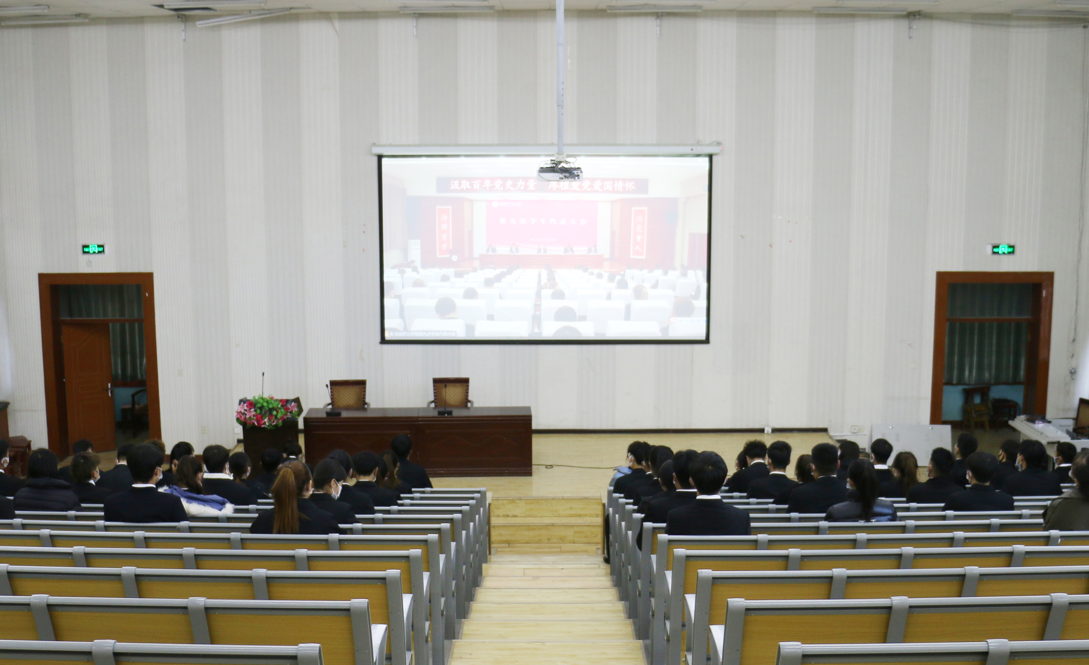 為全力做好學(xué)代會期間的疫情防控工作,會議采取“主會場+分會場”視頻會議的形式召開,主會場設(shè)在學(xué)生發(fā)展中心菁英廳,分會場設(shè)在尚德樓正德廳。