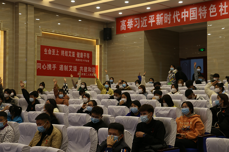 市疾控中心艾防科段曉虹主任和市第二人民醫(yī)院俞文麗主任分別就艾滋病預防與控制、hpv檢測與臨床應對進行了詳細的普及講授,內容豐富、講解生動、意義深刻,使學生充分認識到艾滋病的嚴重危害,切實掌握艾滋病預防知識,消除對艾滋病的恐懼心理,提高自身保護意識和防范能力??破罩v座結束后,全場學生踴躍加入了有獎知識競答,現(xiàn)場氣氛熱烈,學生熱情高漲,很好的調動了學生主動掌握防艾知識的積極性。