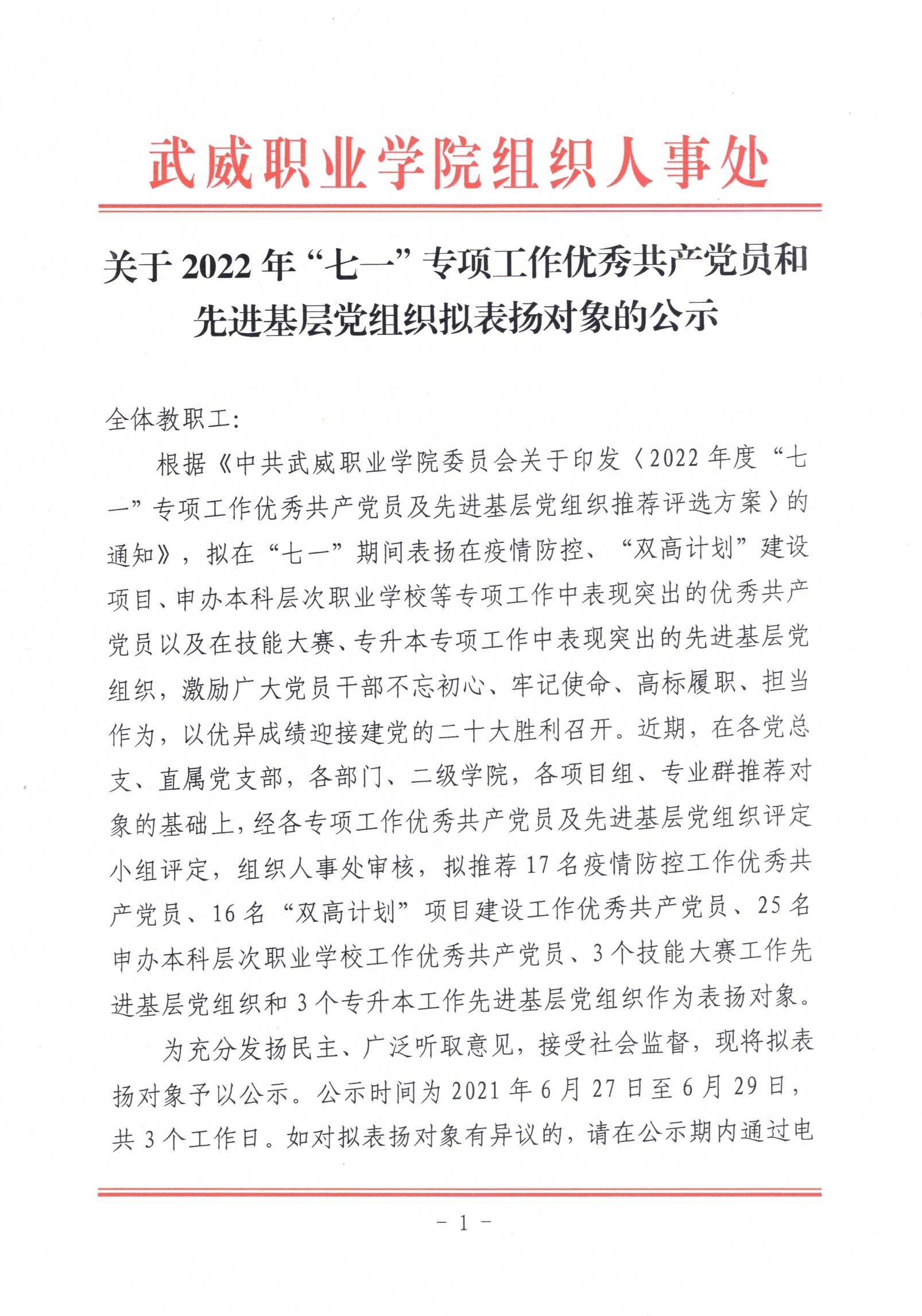 關(guān)于2022年“七一”專項(xiàng)工作優(yōu)秀共產(chǎn)黨員和先進(jìn)基層黨組織擬表揚(yáng)對象的公示