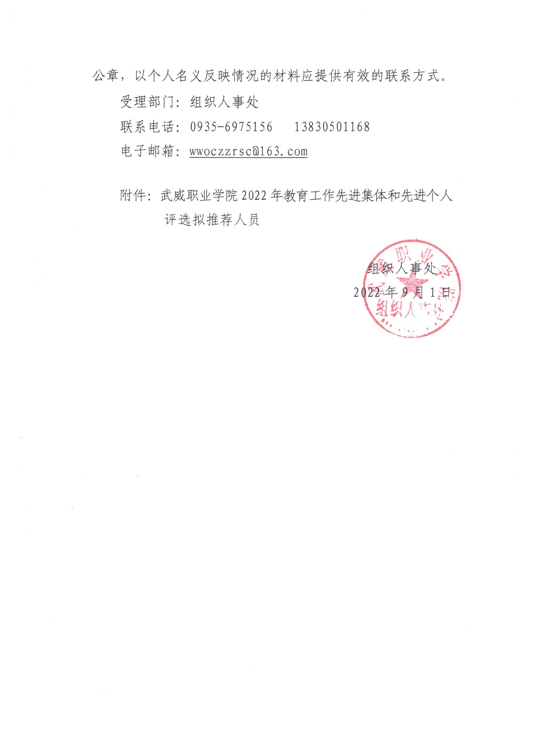 關(guān)于對學(xué)校2022年教育工作先進(jìn)集體和先進(jìn)個(gè)人評選對象結(jié)果的公示